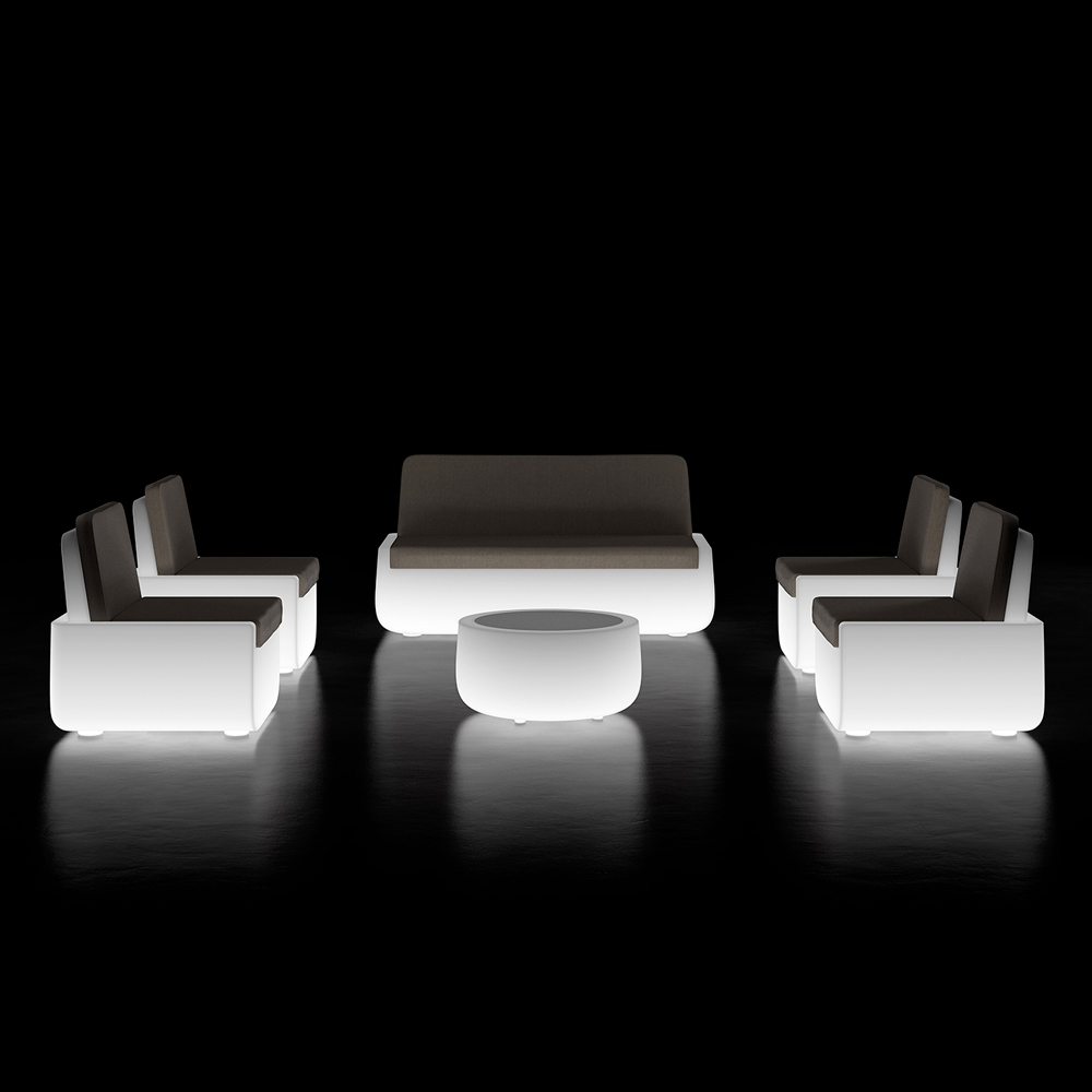 Entirely made in Italy, this outdoor coffee table is characterized by soft queues ideal for recreating convivial furnishing situations. Thanks to the lighting with LED light, the product is enhanced by a soft light that creates a welcoming atmosphere suitable for furnishing outdoor relaxation areas. The top is made of white HPL and is fixed on an opaque polyethylene structure that gives resistance to the sun, heat and shocks. Thanks to its modern and elegant design, it is the ideal solution for environments that need a refined touch without neglecting the functional aspect.