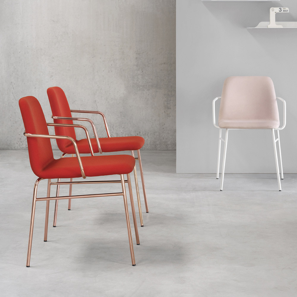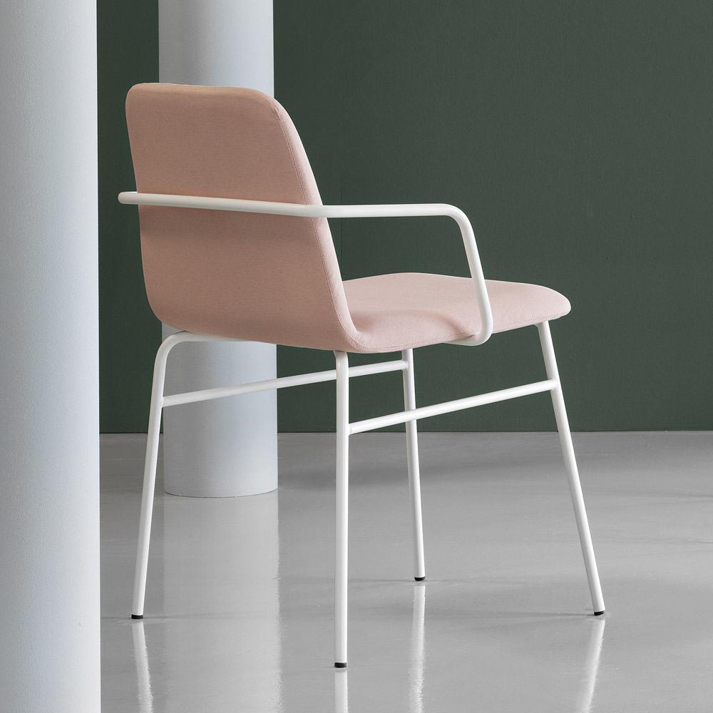 High quality armchair made in Italy with painted metal frame and padded shock and covered in fabric . A welcoming and comfortable seat able to make every moment a moment dedicated to relaxation by letting yourself be pampered by the soft and comfortable embrace of this wonderful modern armchair. Its enveloping shapes and its refined design are able to characterise every furnishing context, conquering the centre of attention thanks to their strong and elegant personality.