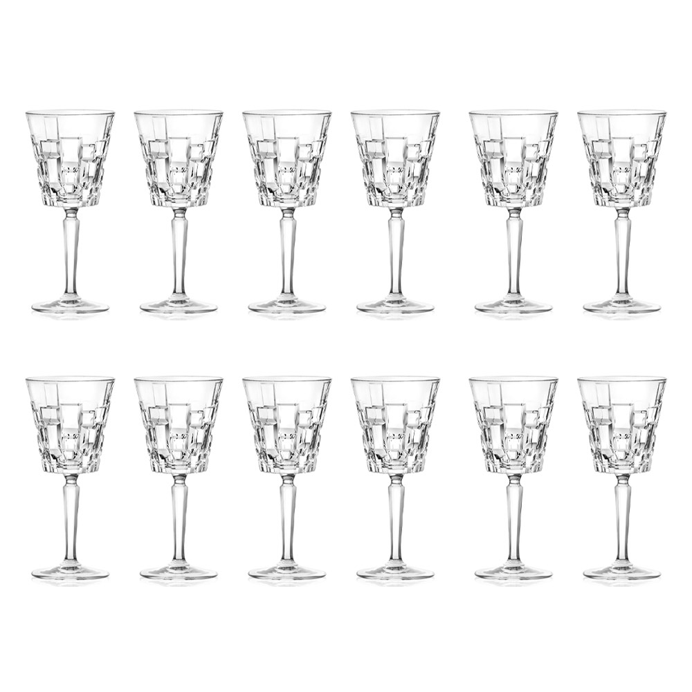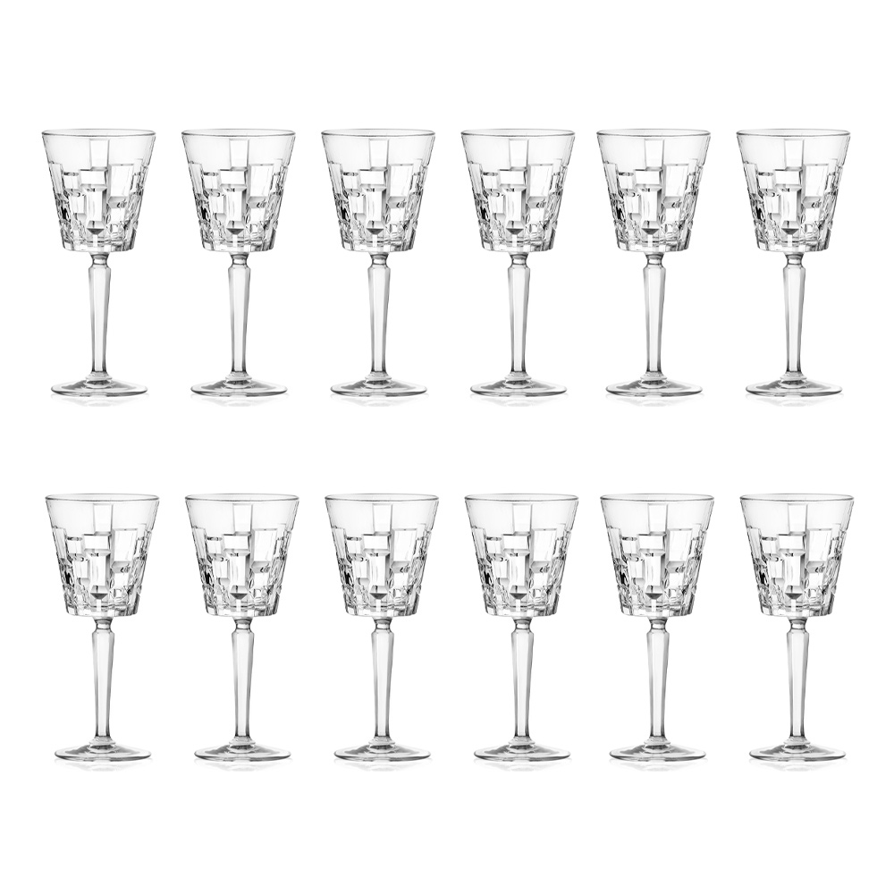 Eco crystal wine or water goblet set with 12-piece carving decoration made in Italy.