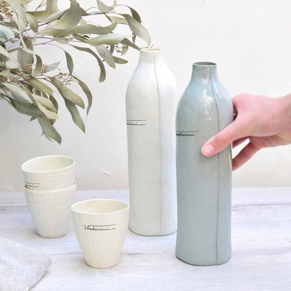Made of the finest white or grey porcelain, these bottles give elegance and refinement to the table, for luxurious setting in company, evoking the sensuality and simplicity of the beauty of porcelain, without sacrificing its practicality.
