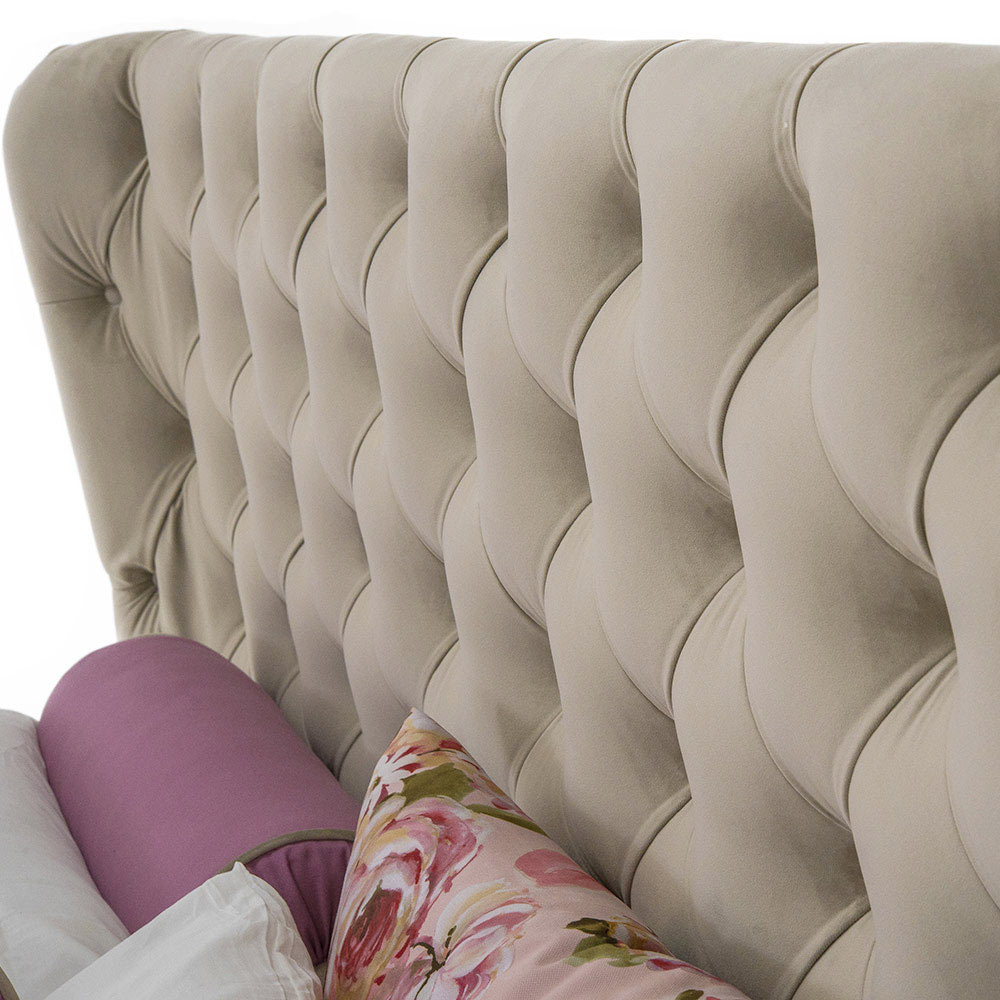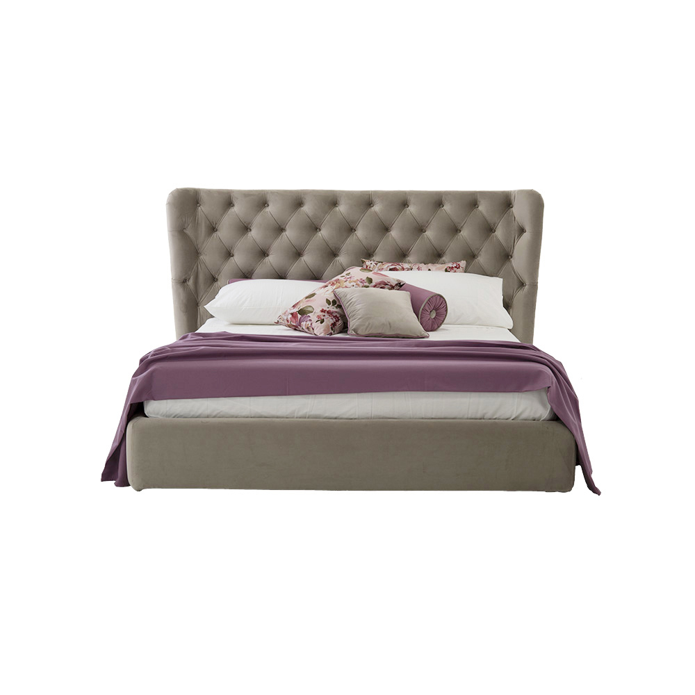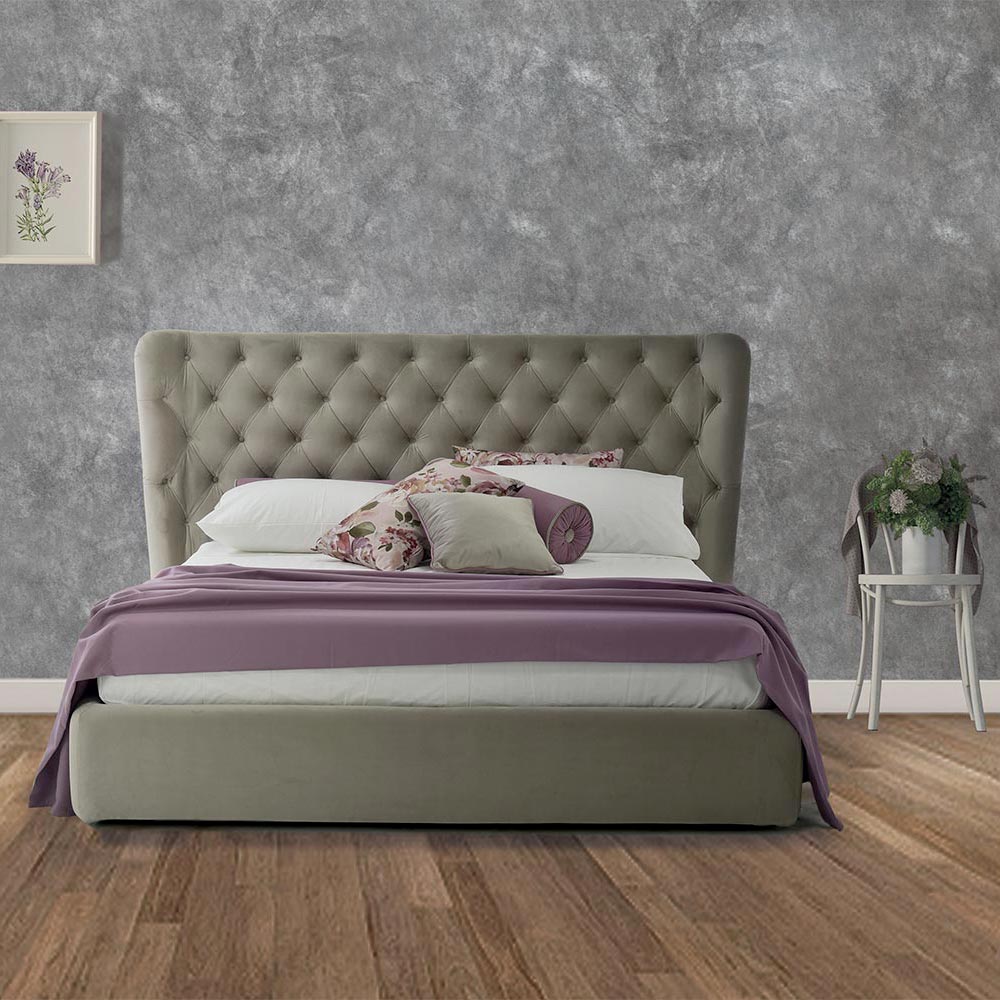 Luxury Double Bed with Box and Capitonnè Headboard Made in Italy - Papero