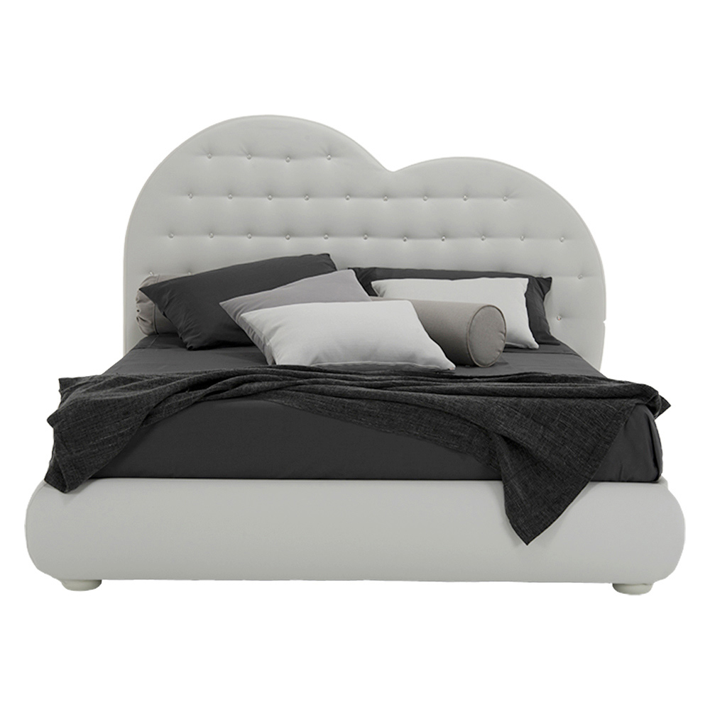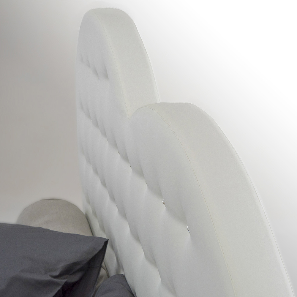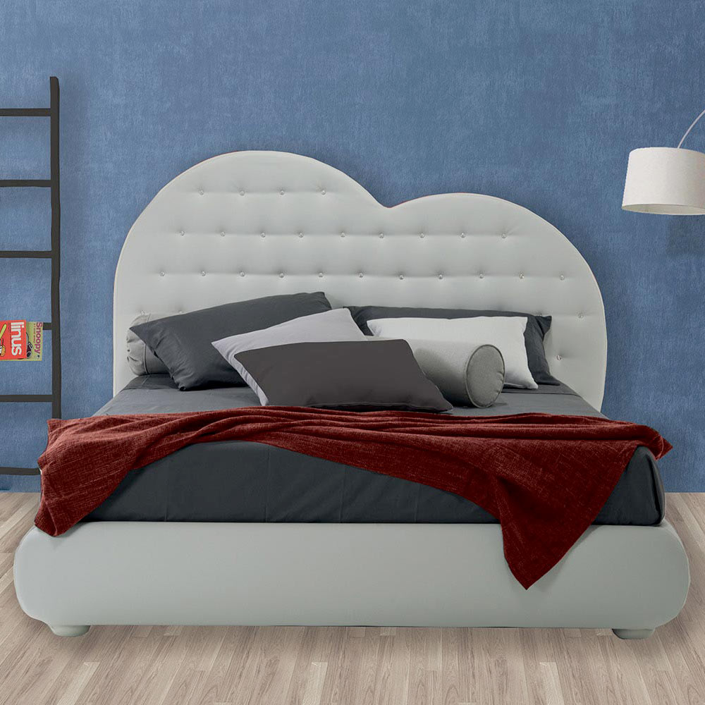The Cuoricino bed is distinguished from others for its strong aesthetic impact due to the heart-shaped headboard embellished with Swarovki buttons.