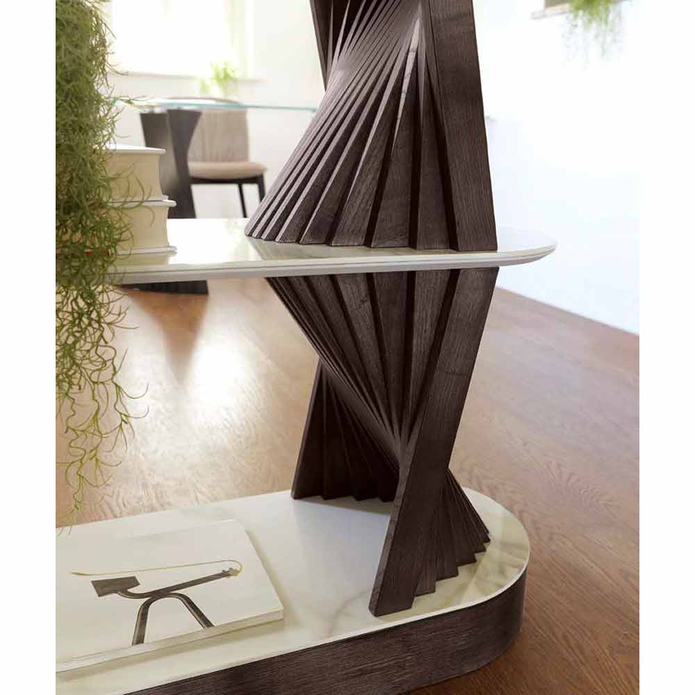 Design floor bookcase in ash wood with stoneware shelves, high quality Made in Italy product.