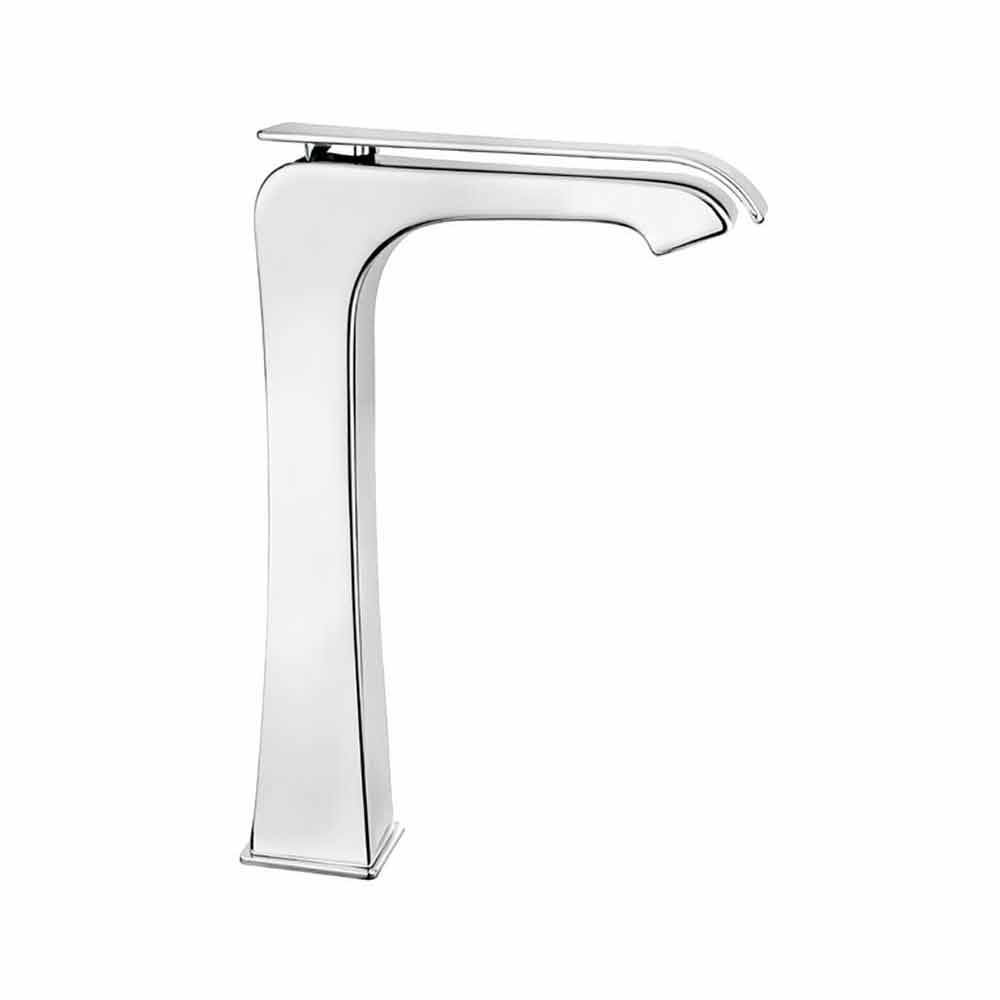 Ultra-modern and creative design countertop washbasin mixer in chrome finish brass 275mm high and with a 135mm centre distance, without drain and without pop-up hole.