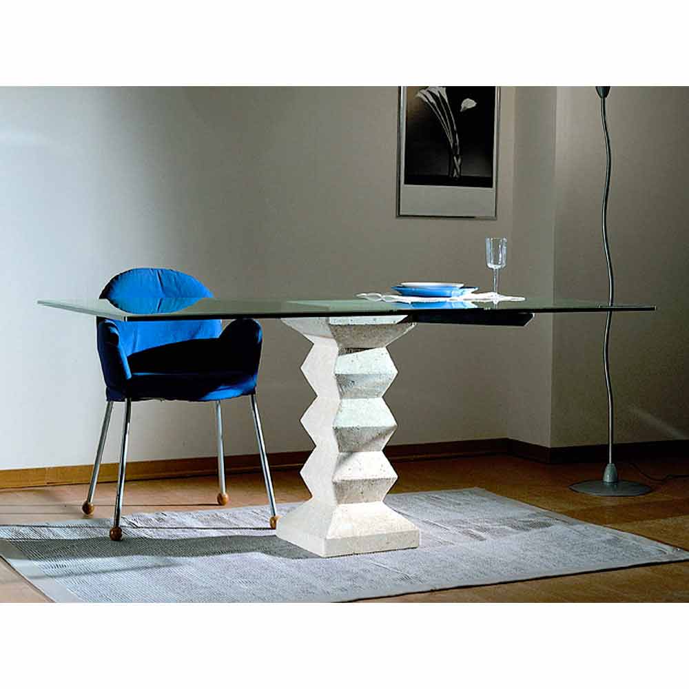 Made in Italy dining table, Vicenza natural stone and crystal, Bacco