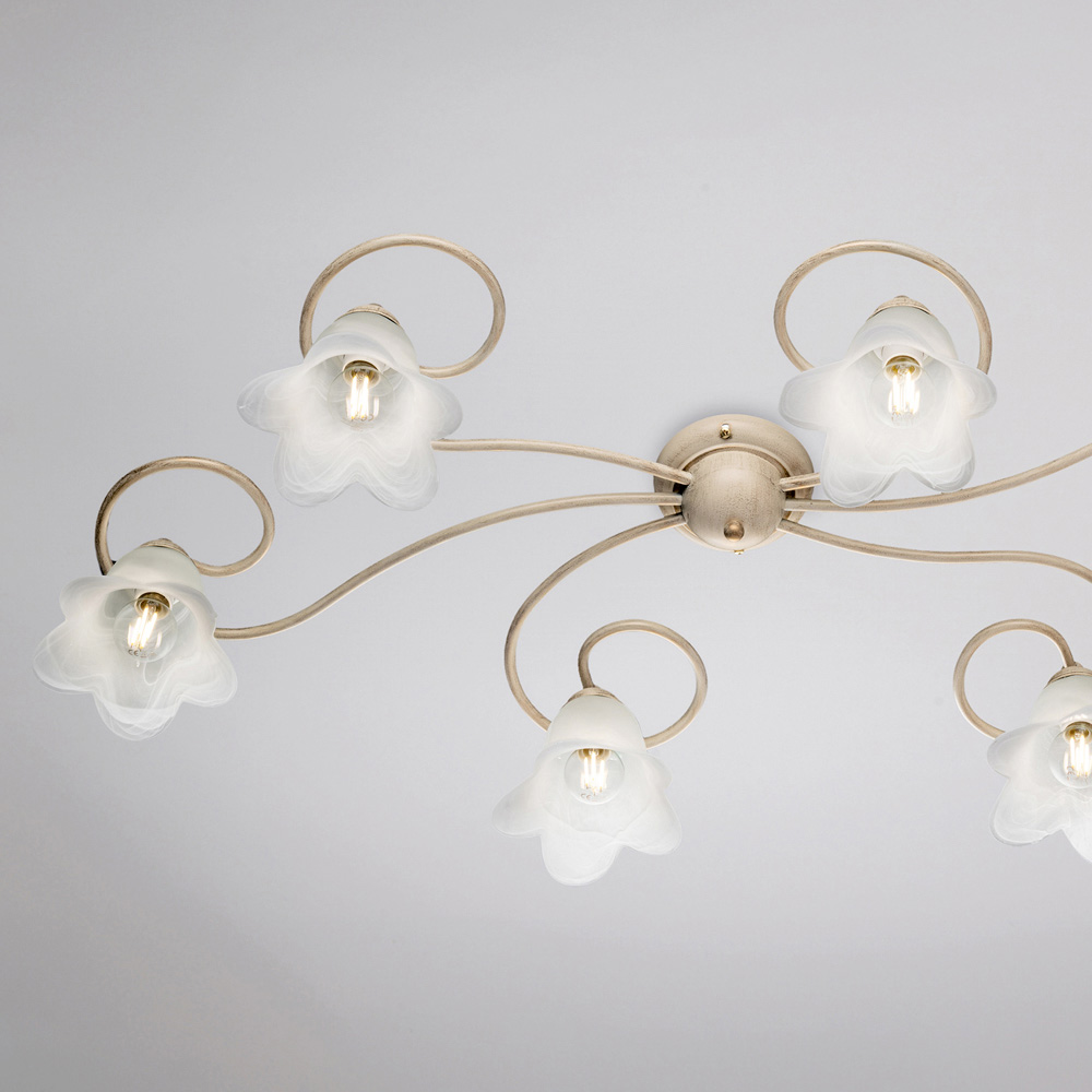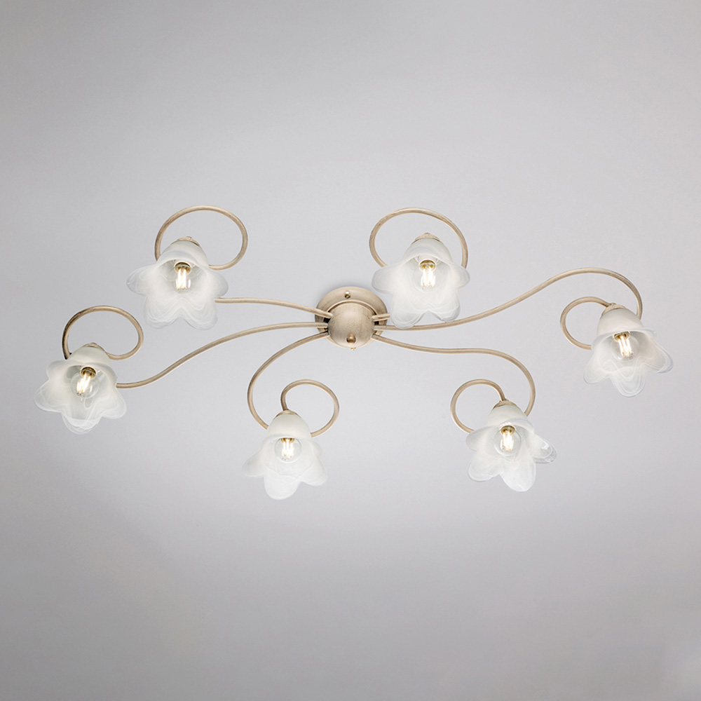The carefully selected materials—iron and glass—lend an elegant effect and a pleasant light output. Entirely made in Italy, this ceiling light is the result of meticulous craftsmanship that enhances both aesthetics and functionality.
