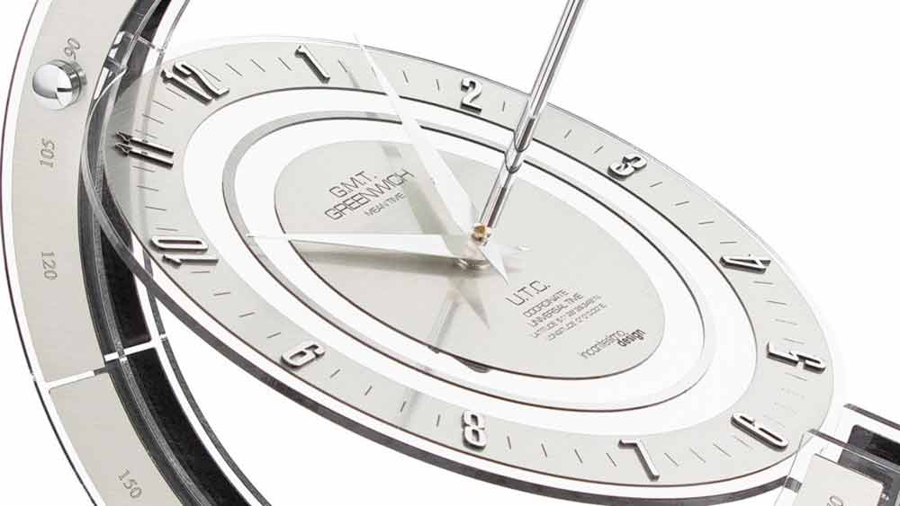 The clock Venere draws inspiration from the shape of the armillary sphere, which was invented in III century B.C. by the Greeks and was used as a sky-observation device. Exposed in the Greenwich observatory there is an armillary sculpture representing the peak of wisdom and knowledge.