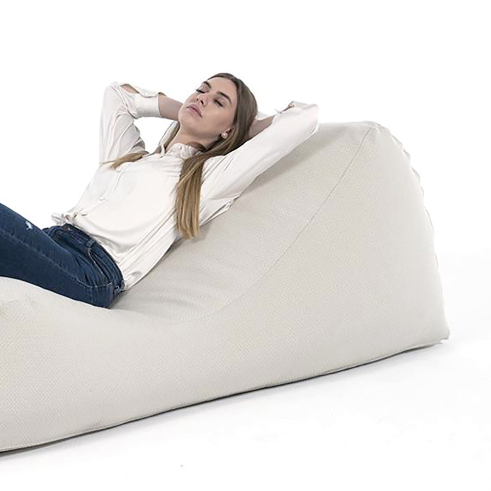 This white linen lounger is the perfect definition of uncompromising relaxation . Its ergonomic shape adapts naturally to the body, offering ideal support for moments of pure well-being in the open air , from reading to afternoon naps.