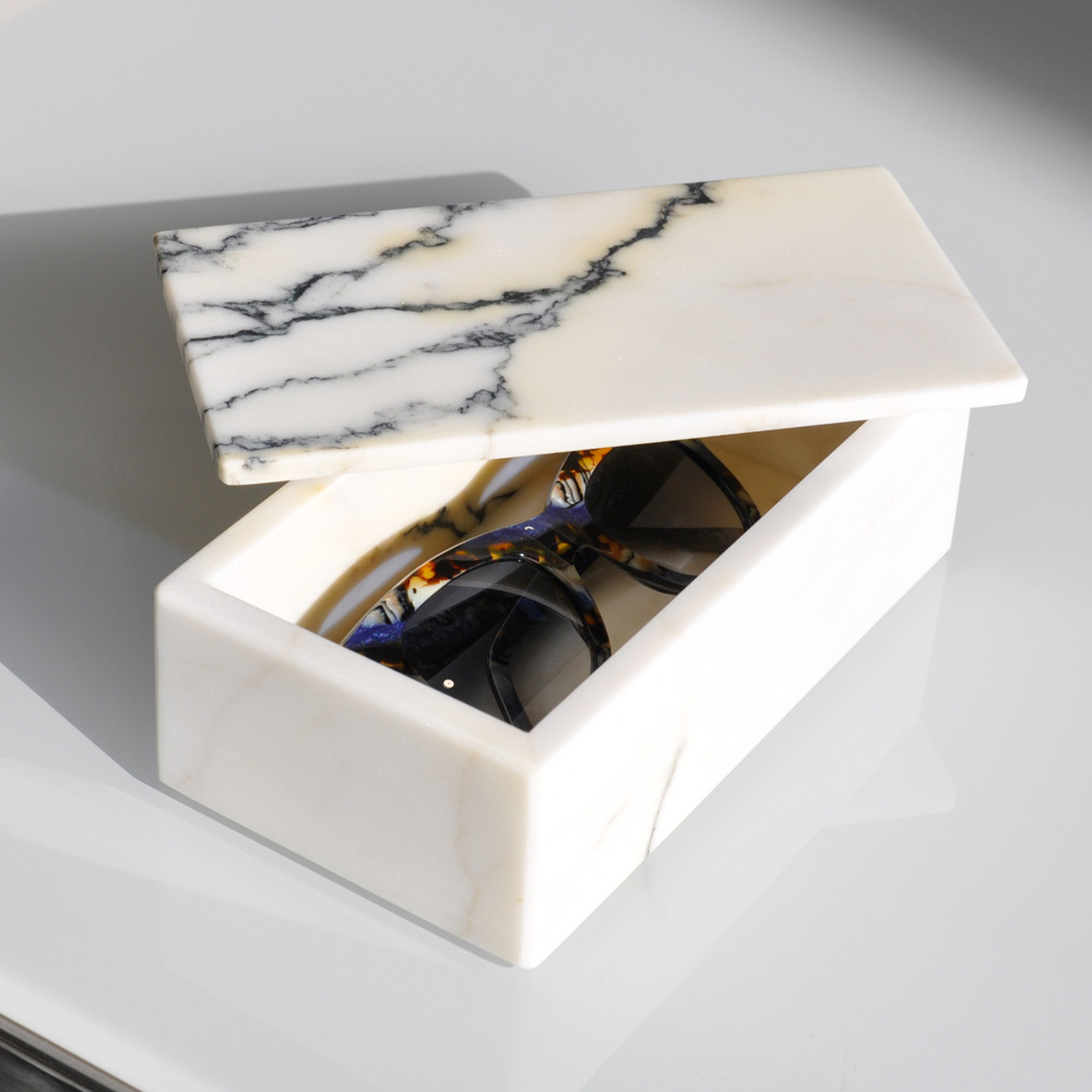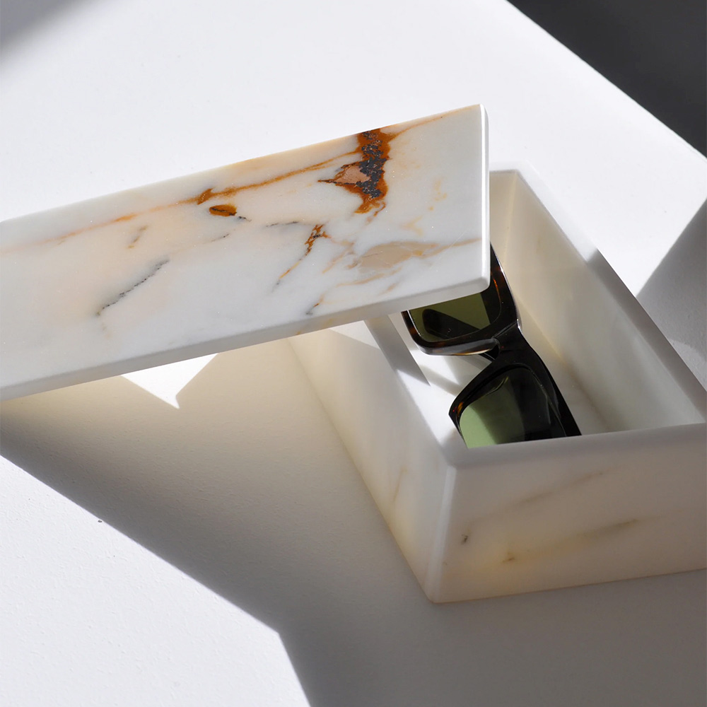 The lid offers protection for your glasses, keeping them safe from dust and scratches, and the solid marble construction ensures timeless durability . Not only will this glasses holder protect your precious glasses, but it will also add a touch of luxury to any bedside table, desk or console table.