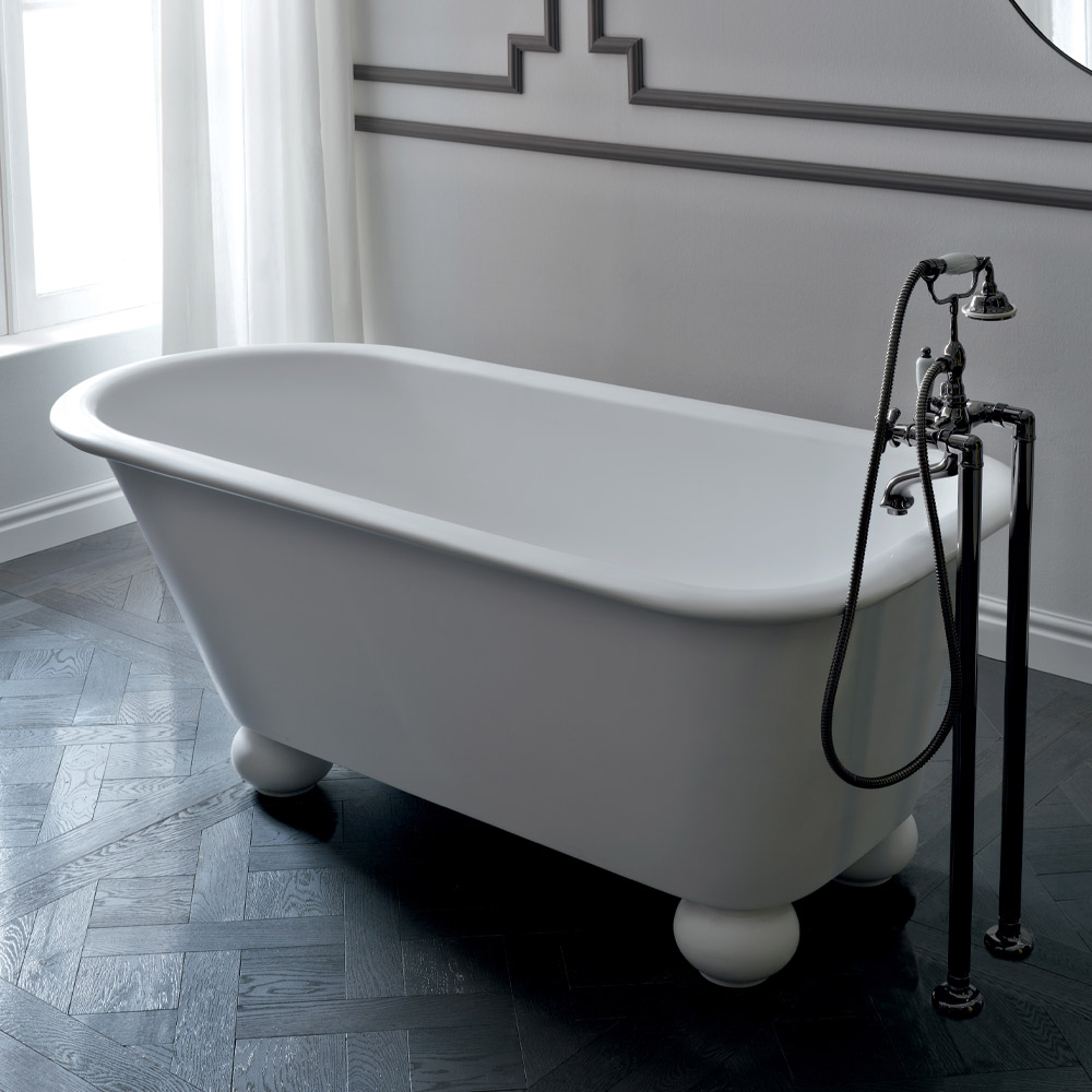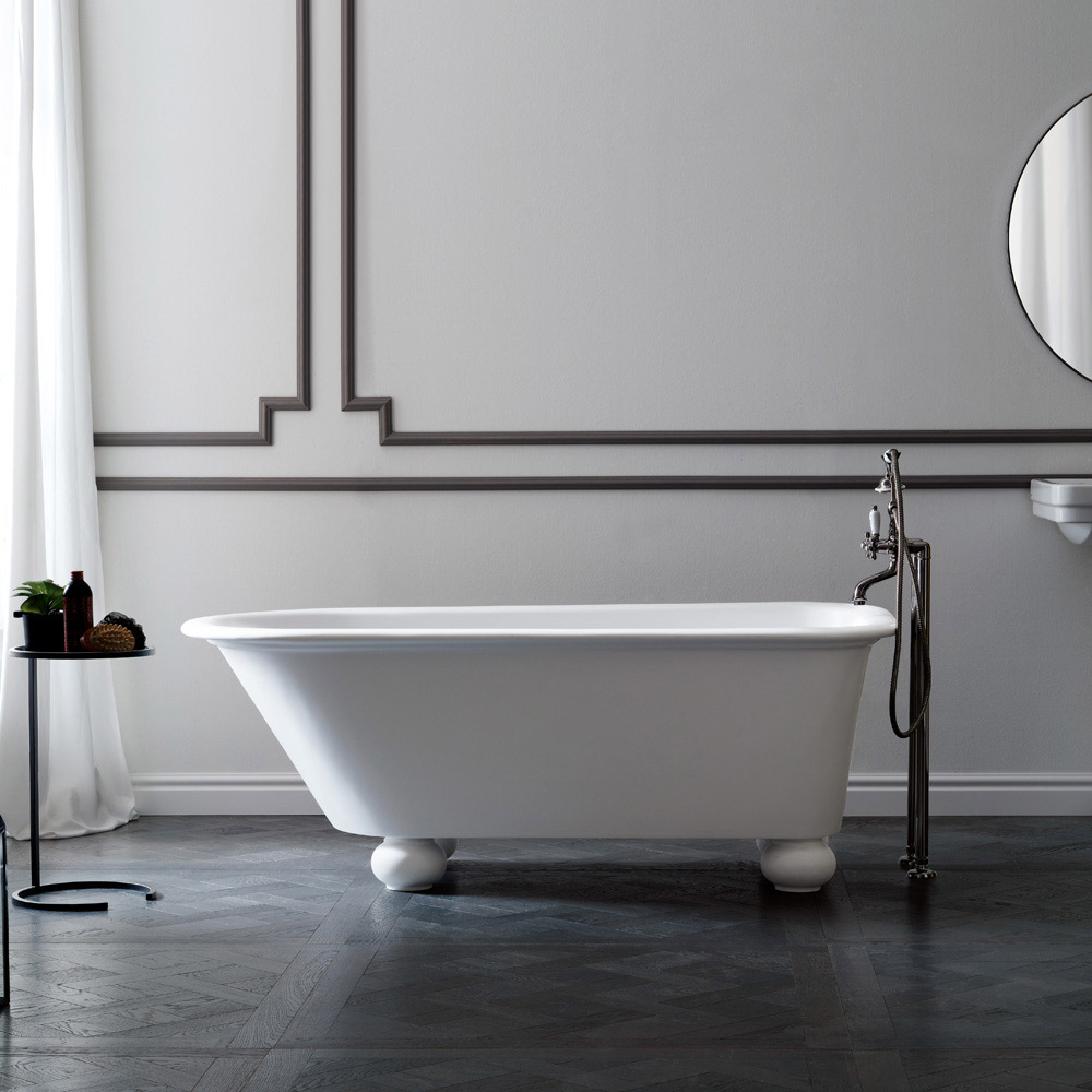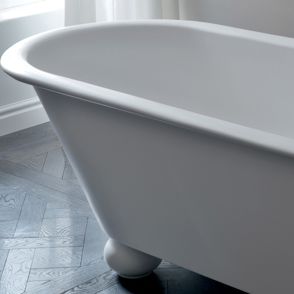 White bathtub in Solid Surface , a mixture of acrylic resin modified with mineral compounds in an opaque white colour. Bathtub dedicated to lovers of the traditional clawfoot tub. The composition mixture allows this characteristic colour to come out. This mixture is also highly renewable, homogeneous and 100% non-porous and therefore waterproof.