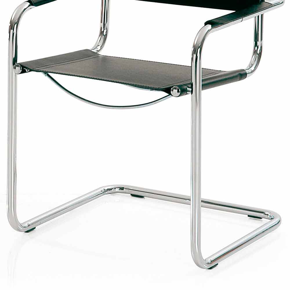Cirillo chair for meeting rooms or conference rooms with armrests is ideal as it reflects all these features; it comes with a chromed metal frame and seat, back and arms in black regenerated leather.