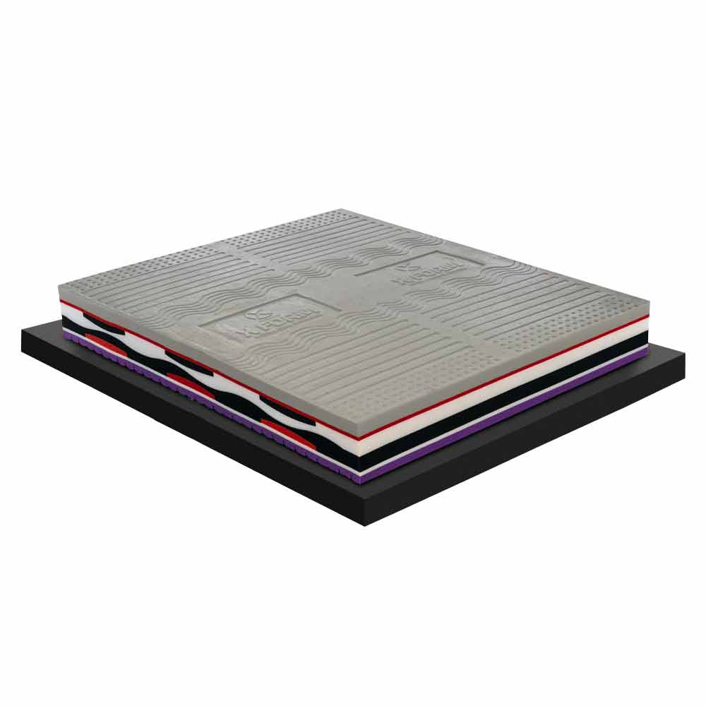 - 5.0 cm Memory Xform grey density 65 kg / m3 from the mould (slow return viscoelastic memory, based on foamed water and with the addition of silver and carbon ions);