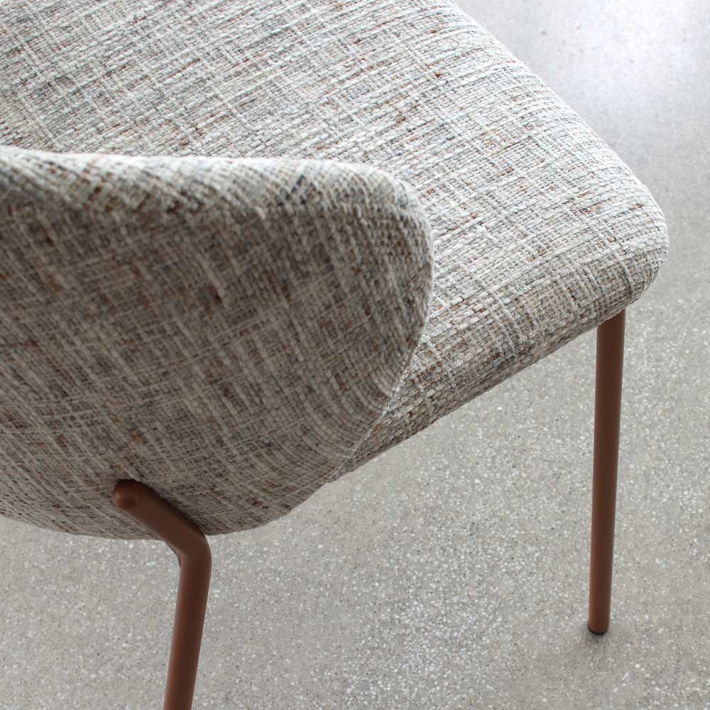 Made in Italy. Armchair with a modern design, defined by soft queues that guarantee comfort and versatility. It is characterized by a covering available in numerous colour and material variations, which allow it to adapt to different furnishing styles. The powder-coated metal legs support an upholstered body, with matching stitching that contributes to the clean and elegant design of the product. This collection is ideal for those looking for furnishing elements with a contemporary design that do not compromise comfort.