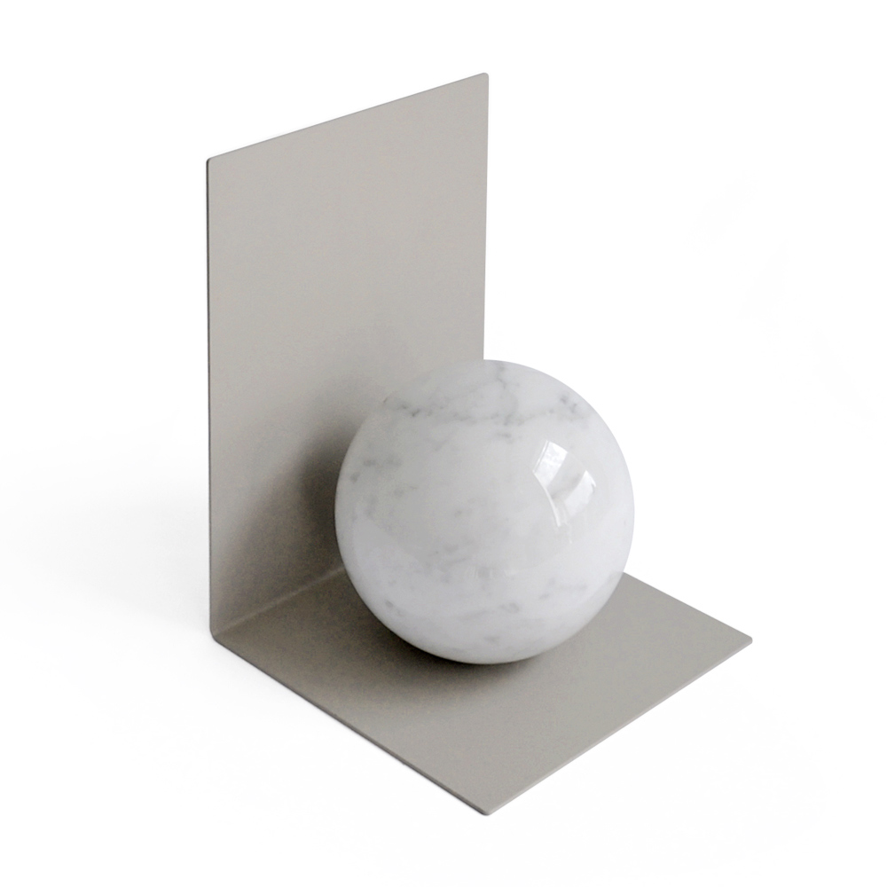 This marble bookend is the perfect synthesis between functionality and modern sculpture . The design is boldly minimalist, where a marble sphere meets a metal plate, creating a visual contrast that is a real treat for the eyes.