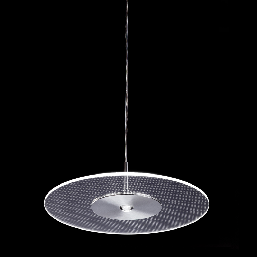 Indoor chandelier made with a metal core and a plexiglass (PMMA) structure with micro-dot processing that allows for greater light diffusion.