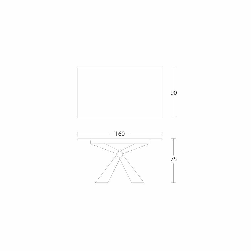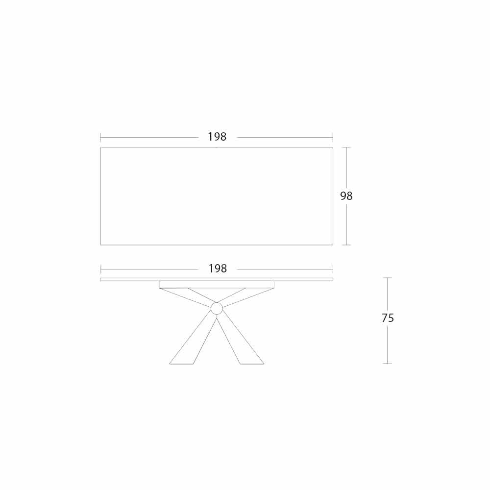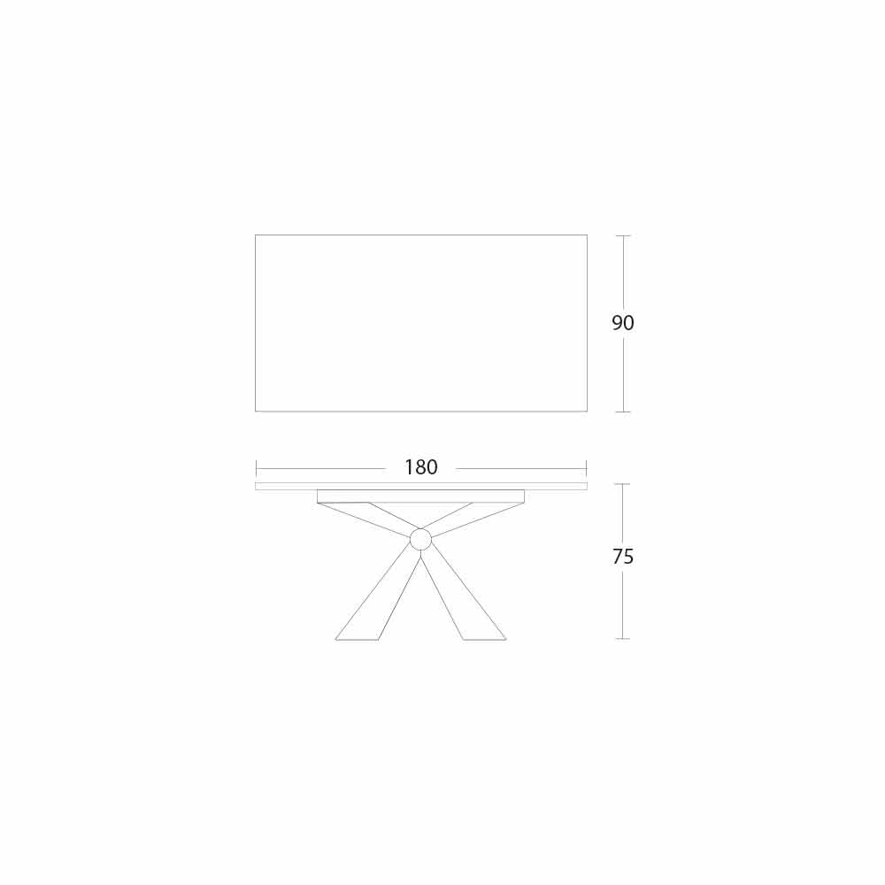 Dining table in laminam ceramic and base with metal knot made in Italy.