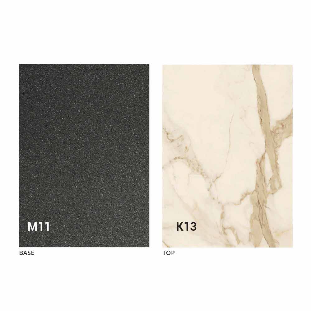 NB: The top and the base of the table can be customized with different sample materials and finishes or RAL lacquering. For information, contact us using the appropriate "