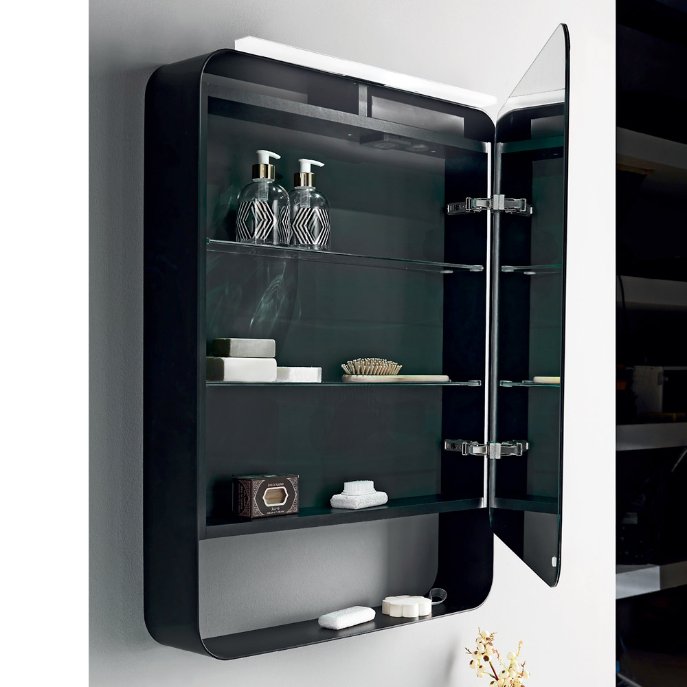 Sophistication and functionality meet in our cabinet , an elegant solution for those looking to maximise space without sacrificing style. The modern design is highlighted by the sturdy and clean metal frame , which frames the double mirror, creating an effect of depth and brightness in any room.