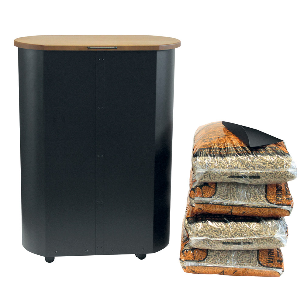 On the bottom, discreet but sturdy wheels ensure easy movement, allowing you to move the pellet holder from the storage point to the fireplace with minimal effort. This pellet holder is not only a functional object , but also a piece of furniture that attracts attention and enhances the aesthetics of your living space. With its generous capacity and eye-catching silhouette, it is the ideal addition for those seeking comfort without sacrificing style.
