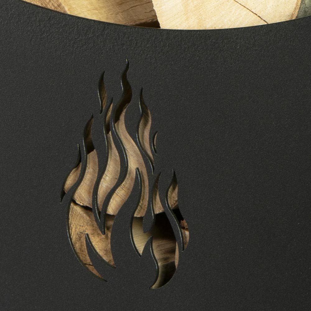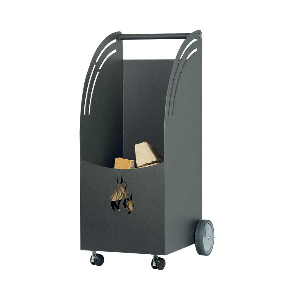 The sturdy metal construction guarantees durability and stability , while the resistant and easy-to-handle wheels allow you to easily move the trolley anywhere in the house, from the wood storage to the fireplace. The flame cut on the front is not only a decorative detail that evokes the warmth and comfort of the fire, but also serves to ventilate and keep the wood dry.