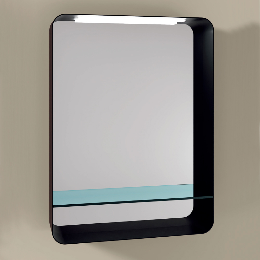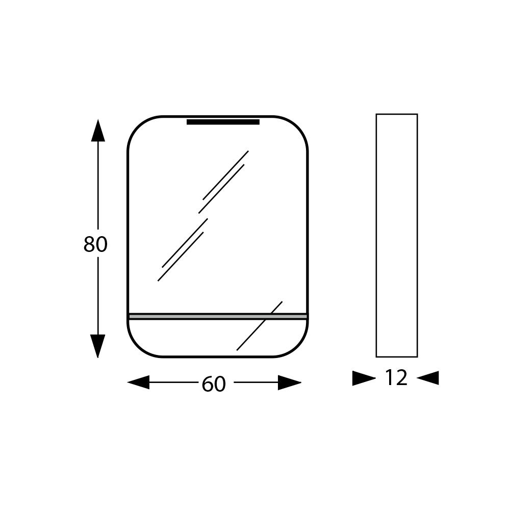 This rectangular mirror with rounded edges is a true triumph of modern design. Its metal frame is a bold statement of elegance and style , while the integrated glass shelf adds a touch of sophisticated functionality .