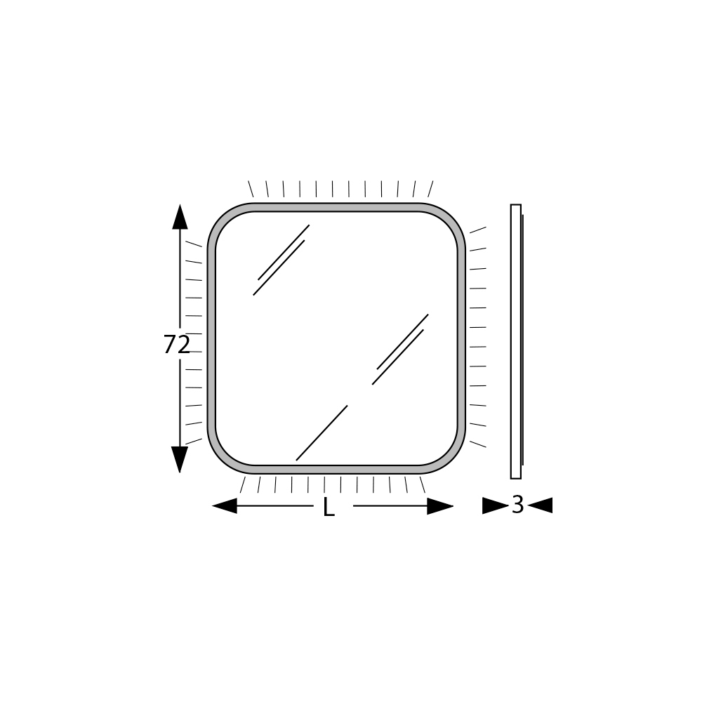 The rounded shape with refined corners makes this mirror a versatile and attractive addition to a variety of spaces, from the bathroom to the bedroom, or as a distinctive accent in a living area. LED technology not only emphasises the unique design but is also energy efficient , ensuring long-lasting lighting.
