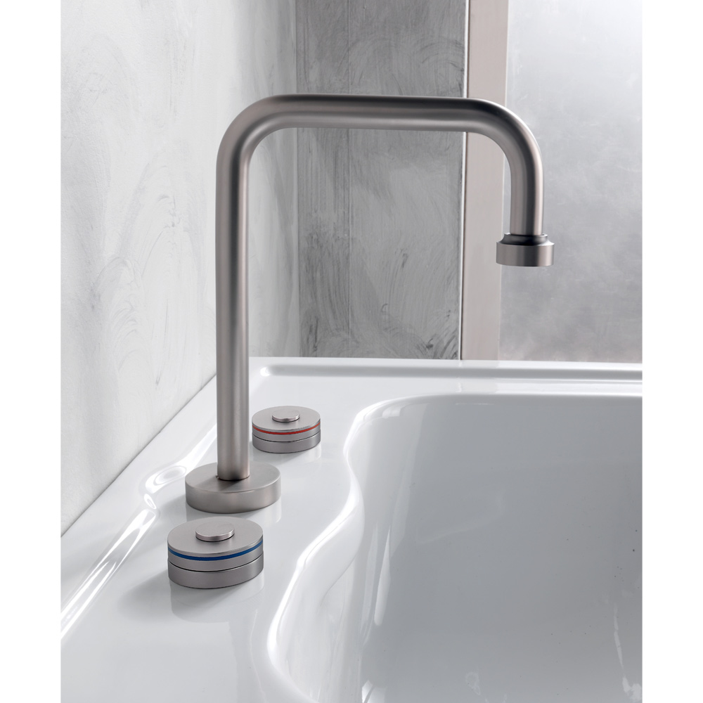 Modern 3-hole brass washbasin mixer with drain Made in Italy