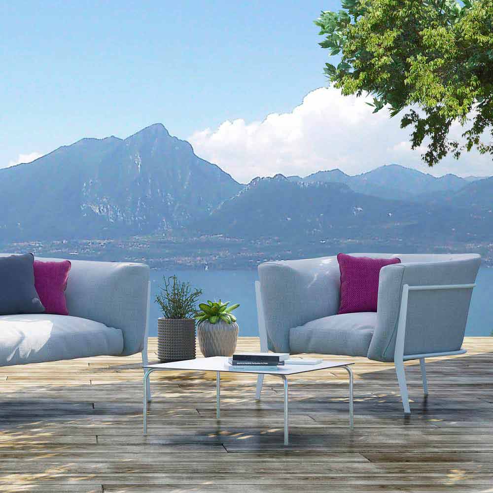 Modern outdoor armchair, aluminium structure and removable fabric, made in Italy design.