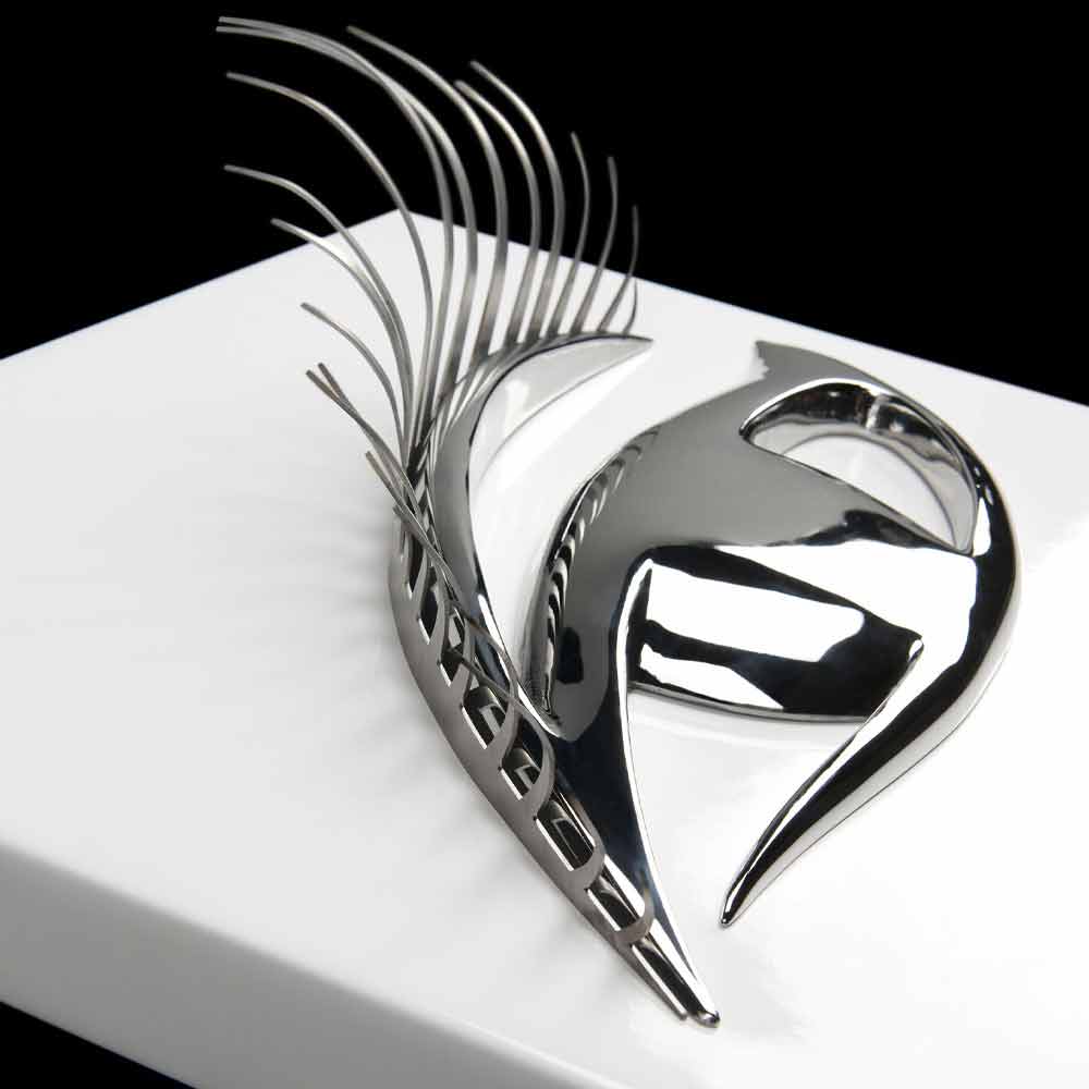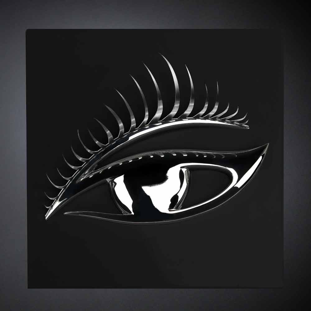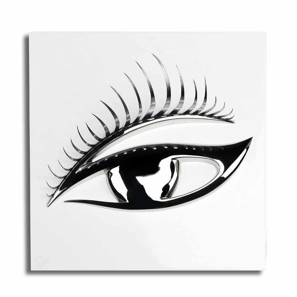 Wall decorative panel handcrafted in Italy in lacquered wood with steel eyelashes and resin eye with chrome finish. The elegance of the design meets the refinement of the materials to give life to an original complement that can enrich your home walls in an exclusive way and with a