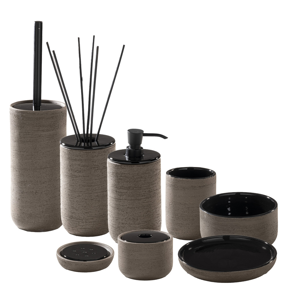 Countertop bathroom accessories in clay and dark earths Made in Italy.