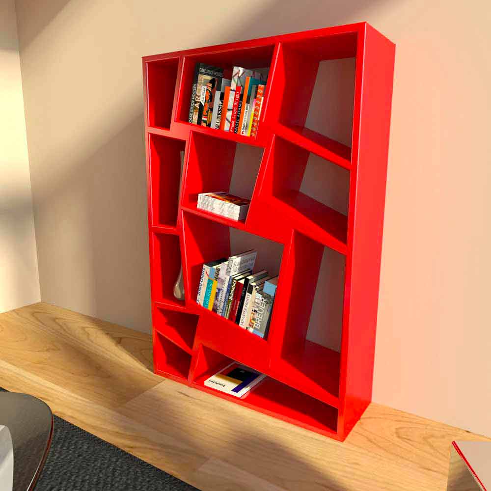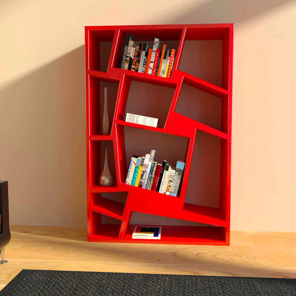 Very particular and of notable practicality, the crossed shelves that allow the support of books as well as other objects, making this library truly unique in its kind and in its forms.