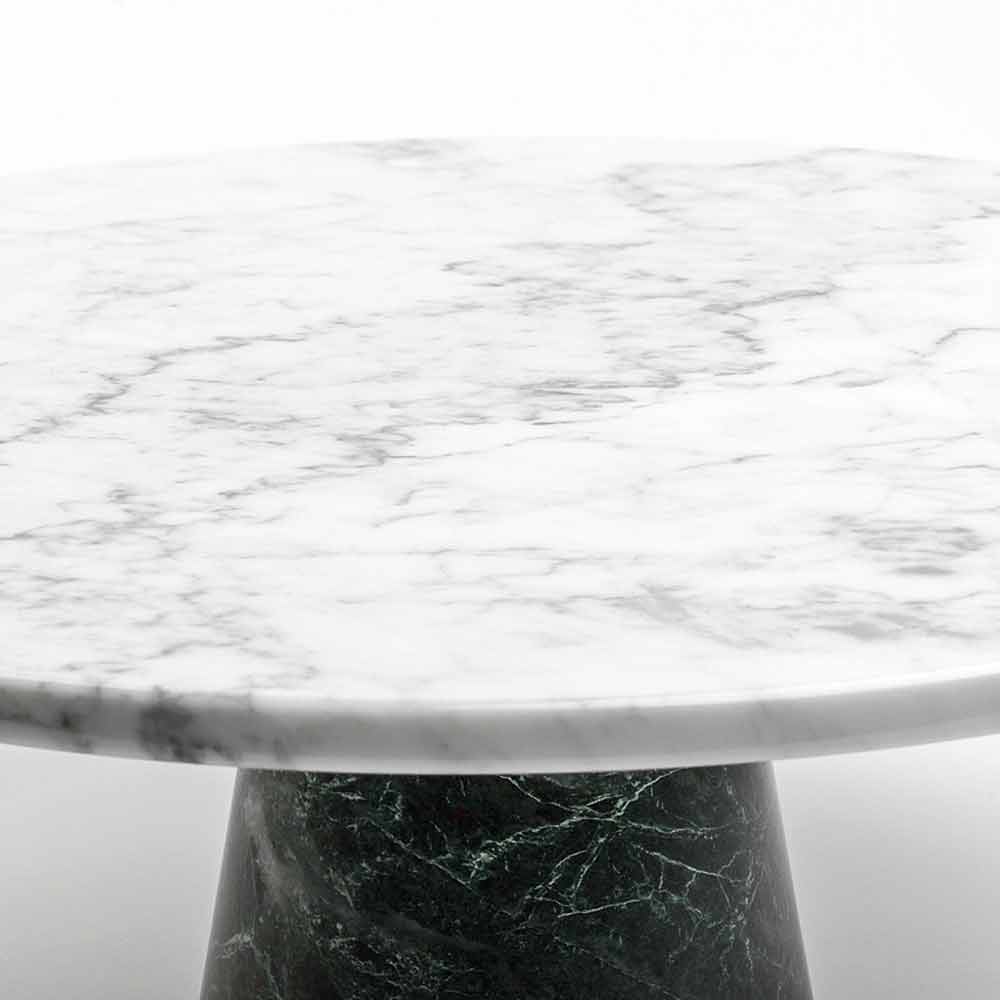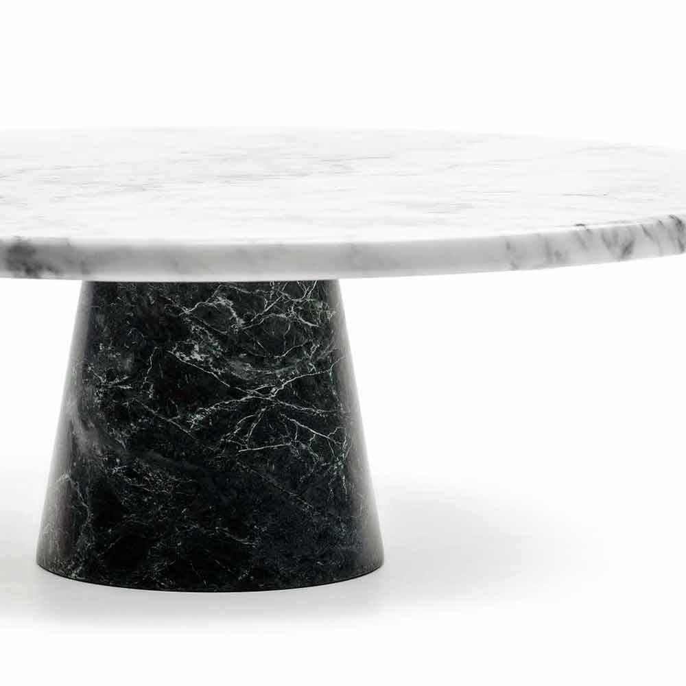 Elegant modern cake stand with white Carrara marble top and black Marquinia marble base. Made of high quality fine marble. It is a unique piece as each block of marble used differs from the others for veins and shades.