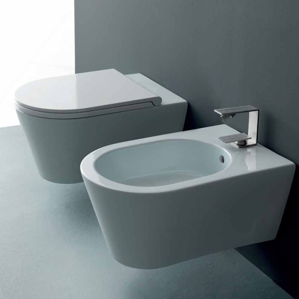 Sun Round modern ceramic wall hung WC 57x37 cm, made in Italy