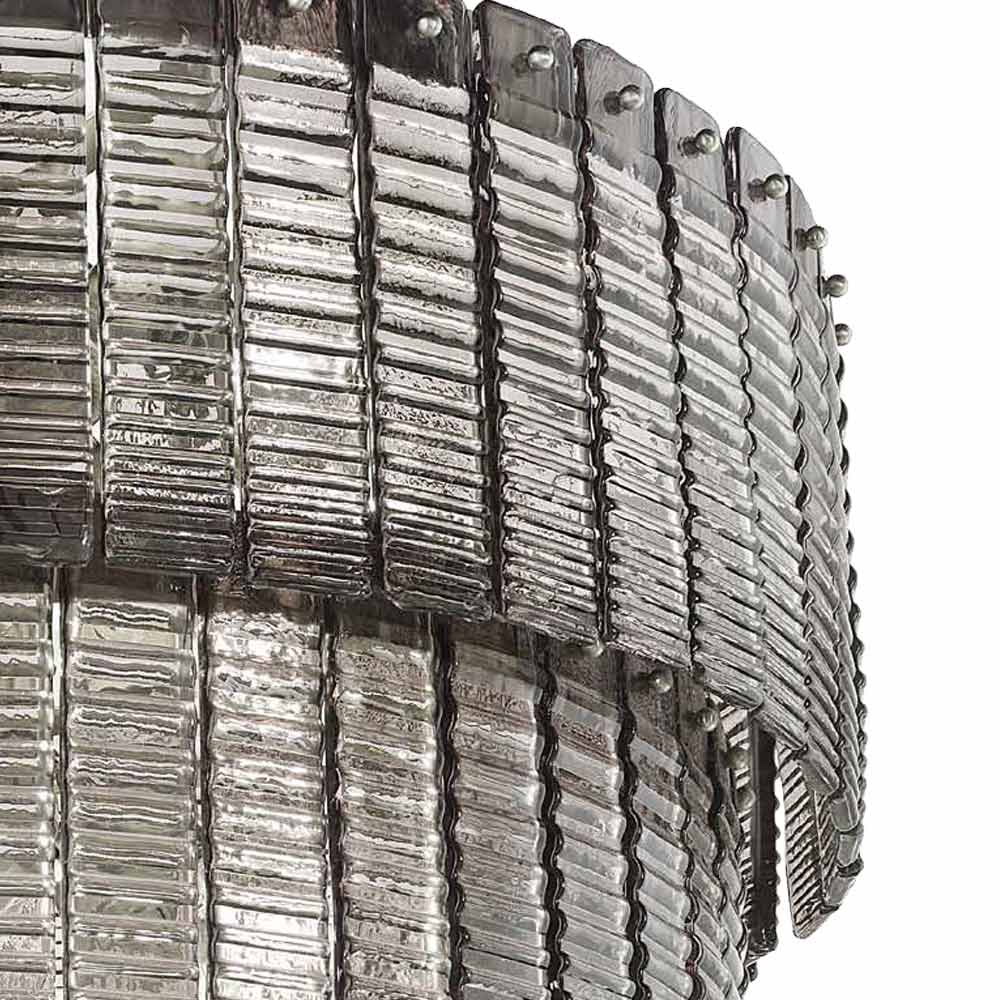 12 lights chandelier in handcrafted glass with geometric decoration, Italian luxury.