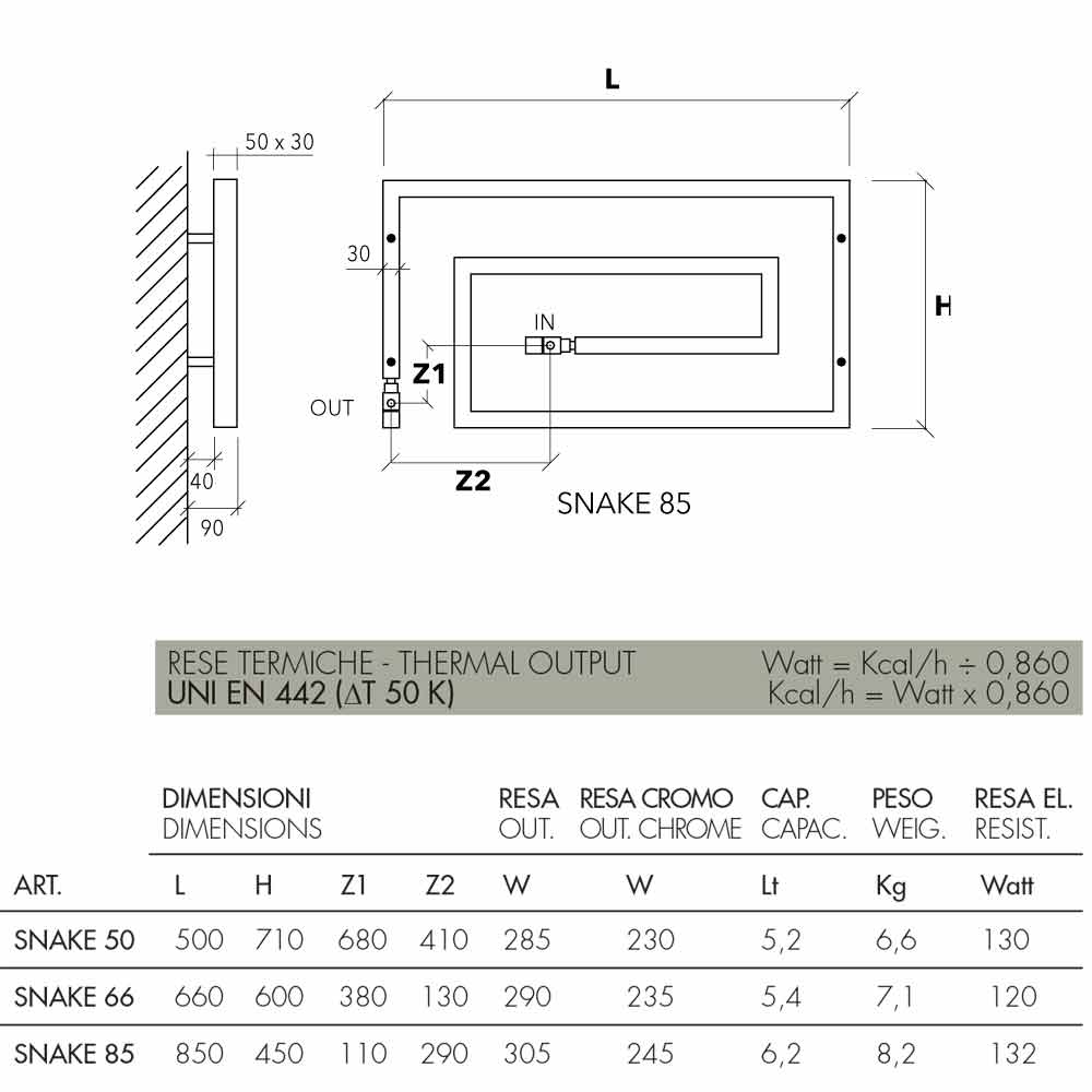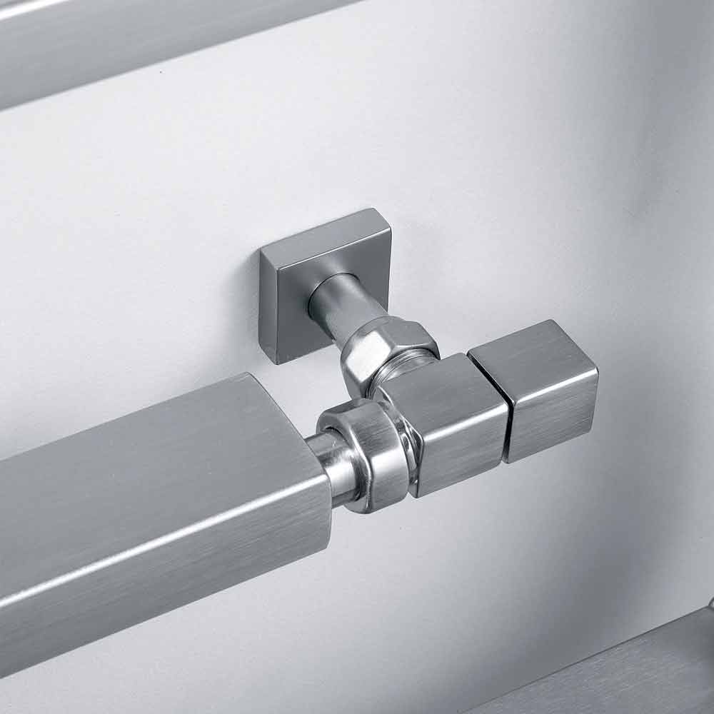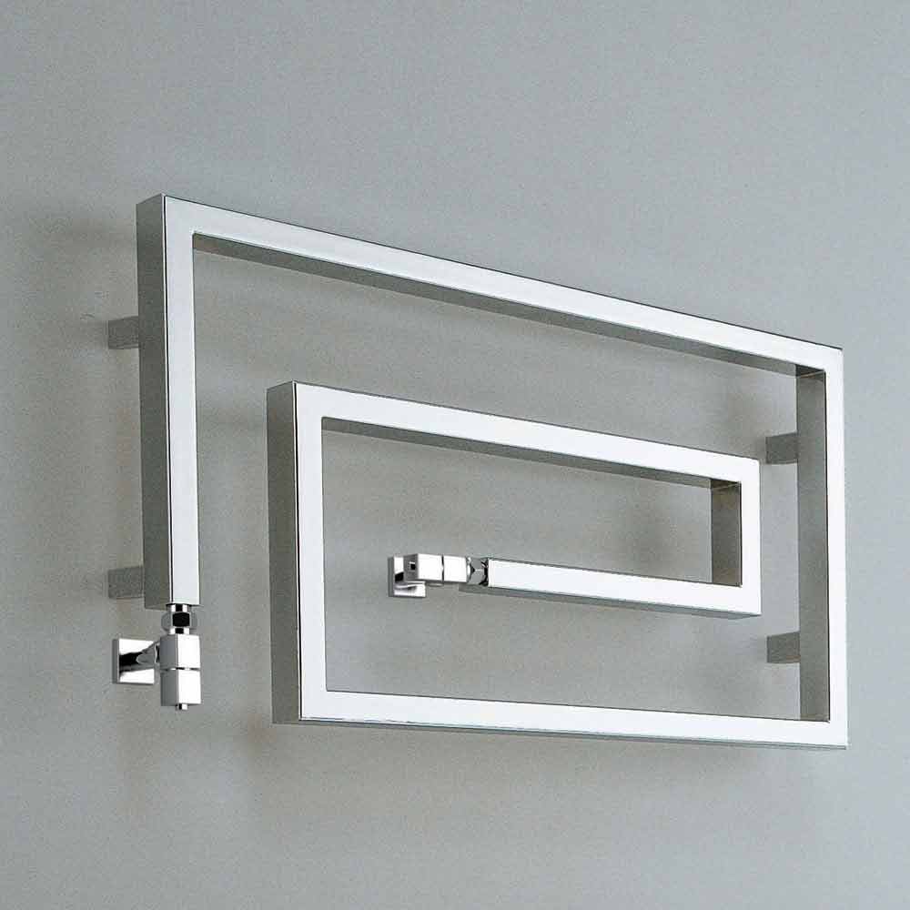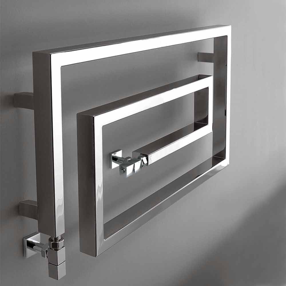 Chrome steel radiator, in the hydraulic version. A collection with a strong graphic sign. Form, material, function and technology create no longer simple towel warmers but real furnishing elements.