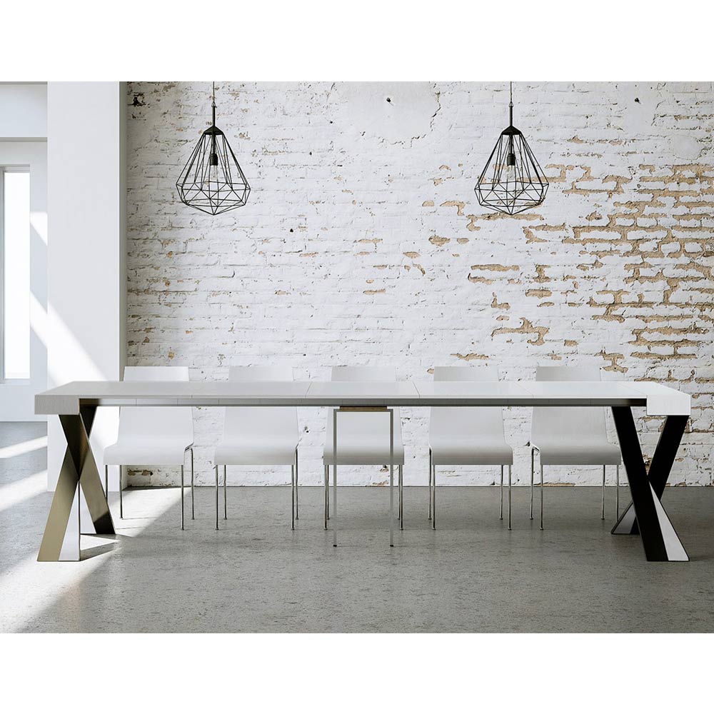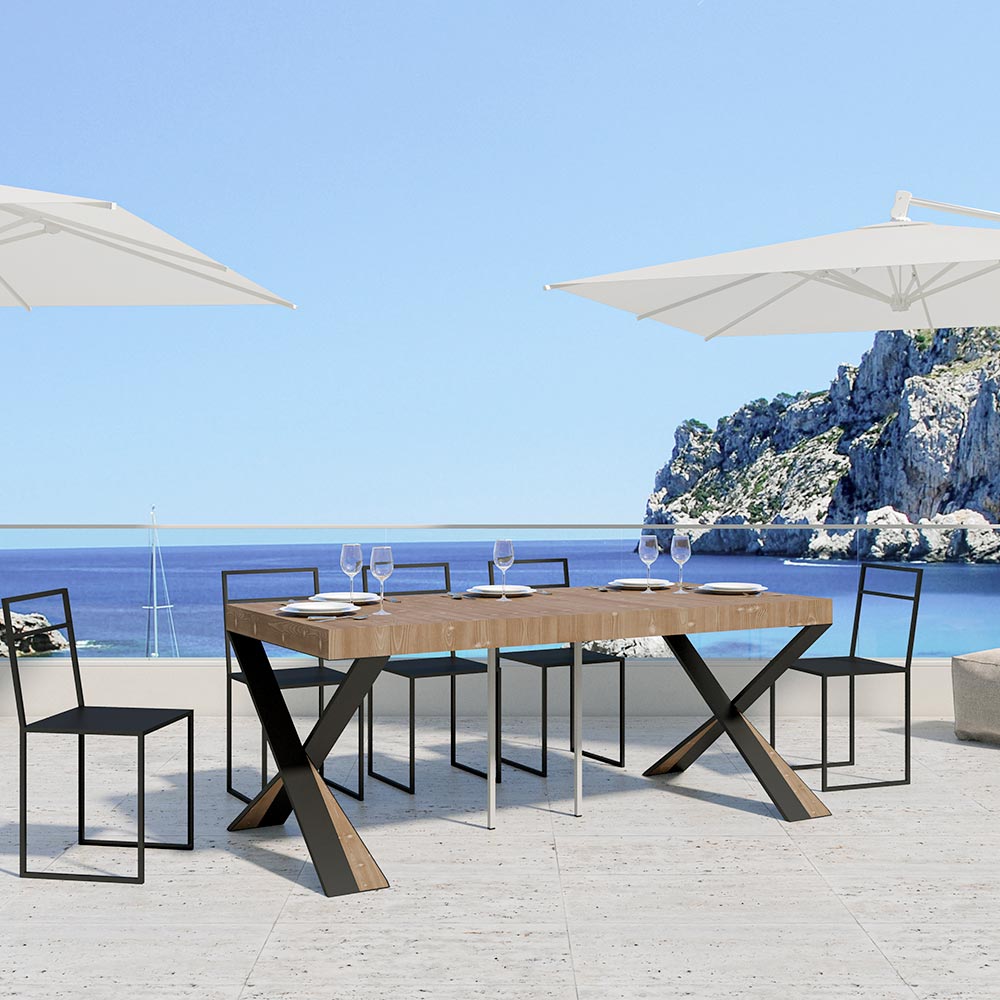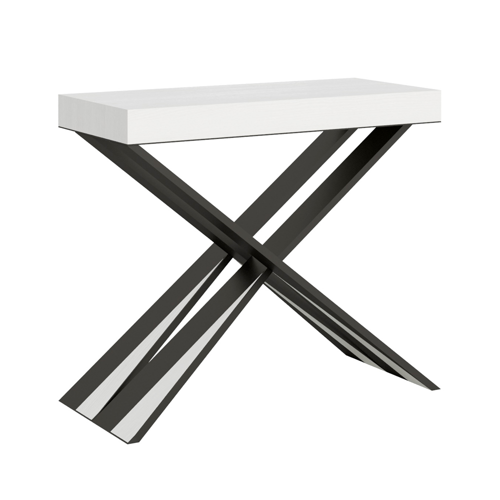 This extendable console table embodies elegance and functionality in an eye-catching design. ĆĀ features a modern silhouette with a X base that not only provides solid support but also adds a touch of sophisticated originality. The top in furnished woodĆØ a tribute to the quality of Made in Italy, prized for its durability and ability to withstand the passage of time.