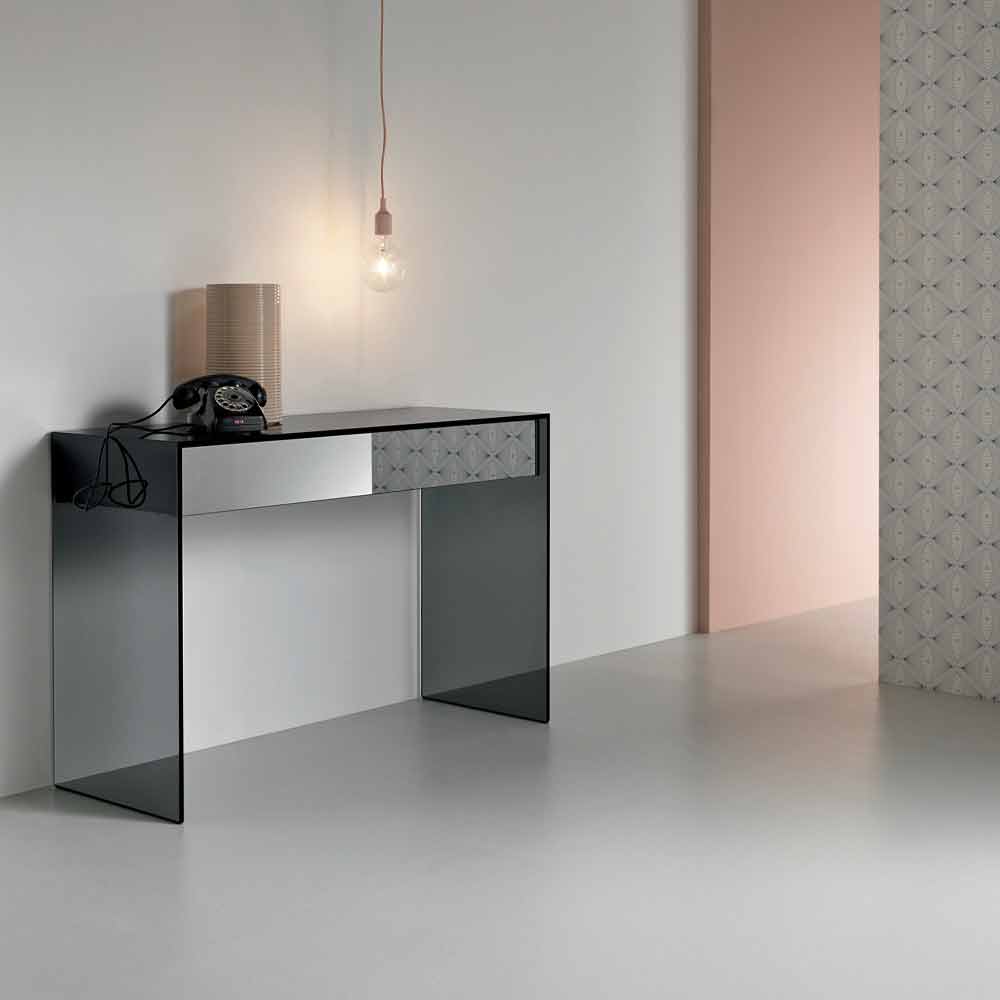Design Consolle Desk in Smokey Glass with Drawers Made in Italy - Mantra