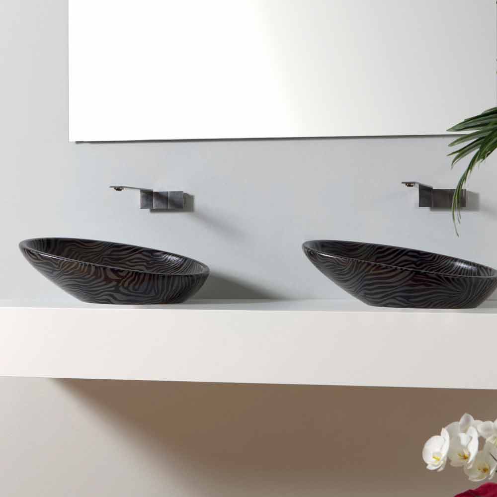 Glossy is the countertop washbasin made in Italy by master craftsmen in ceramic with a silver zebra finish.