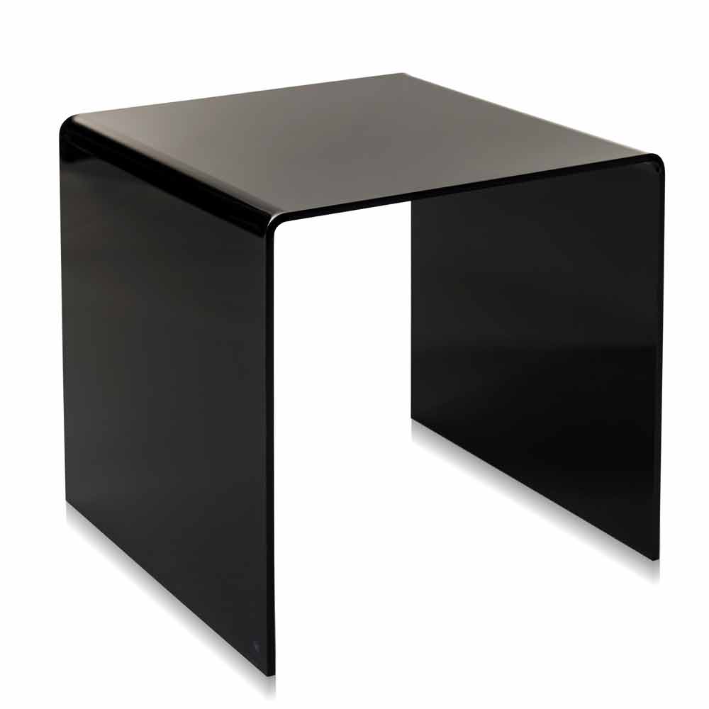 Modern design black side table 50x50 cm Terry Big, made in Italy Terry Big is made of 100% PMMA plexiglass from virgin polymers and it can be used both as a coffee table or as a bedside table. Its design is inspired by the geometries of the '80s. Laser cut and bent at high temperatures. Self supporting. It matches the Terry Small side table.
