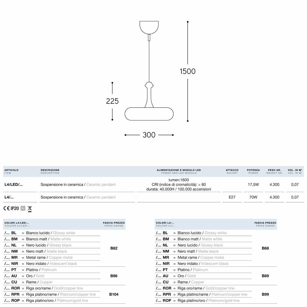 I Lustri 4 is available with different finishings and with socket for standard light bulb E 27 or LED light.