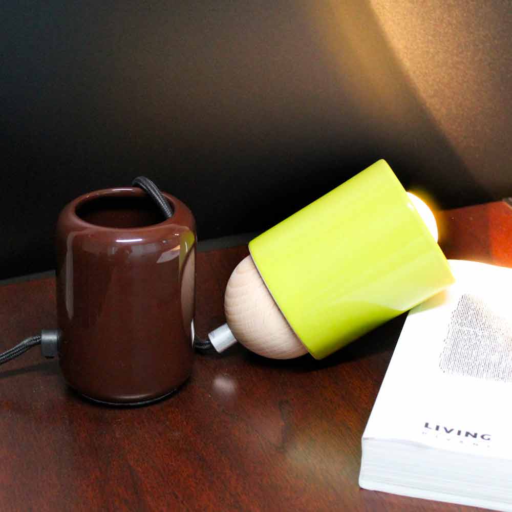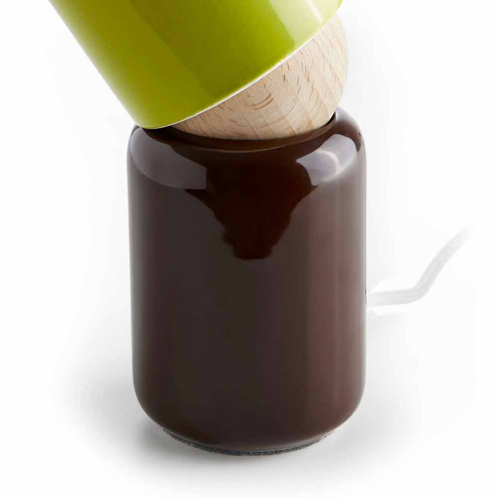 Produced exclusively in Italy in brown and green ceramic and beech wood, its cable is black and the cable clamp is in aluminium.