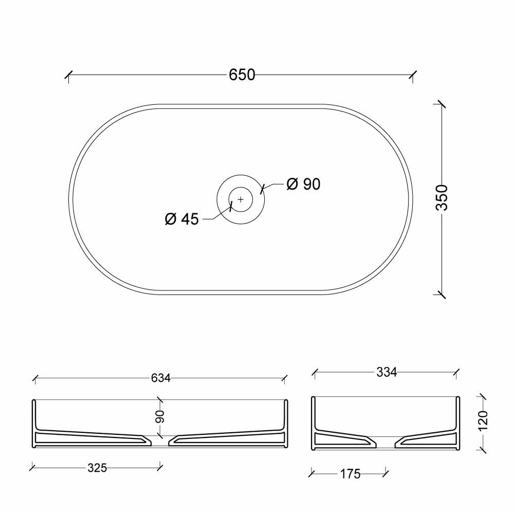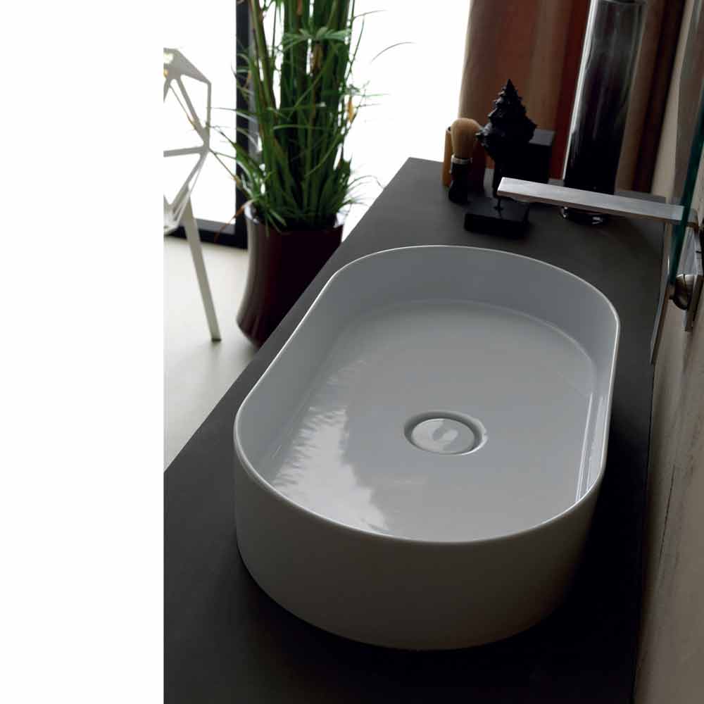 Modern design ceramic countertop washbasin Sun made Italy 65x35 cm