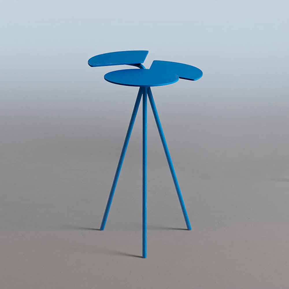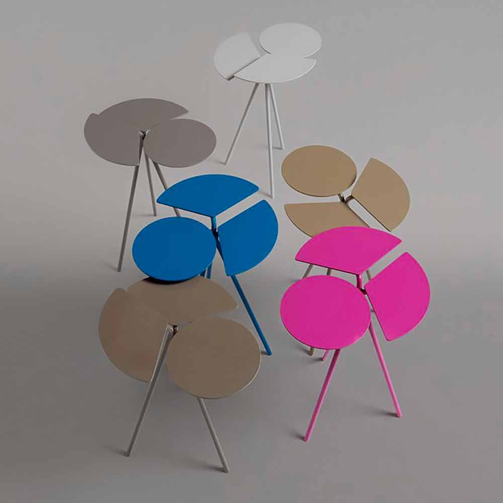 Round tripod coffee table for lounge, modern design in lacquered sheet metal in various colours, original top made in Italy.