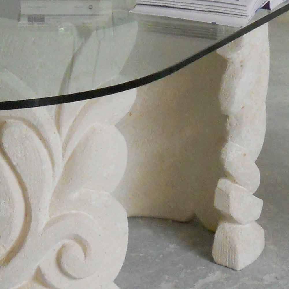 The dining table Aden is entirely made in Italy. Its base is made of Vicenza natural stone and it has been hand-carved from the original stone block. The table top is made of float crystal (15 mm thickness) layd on the base.