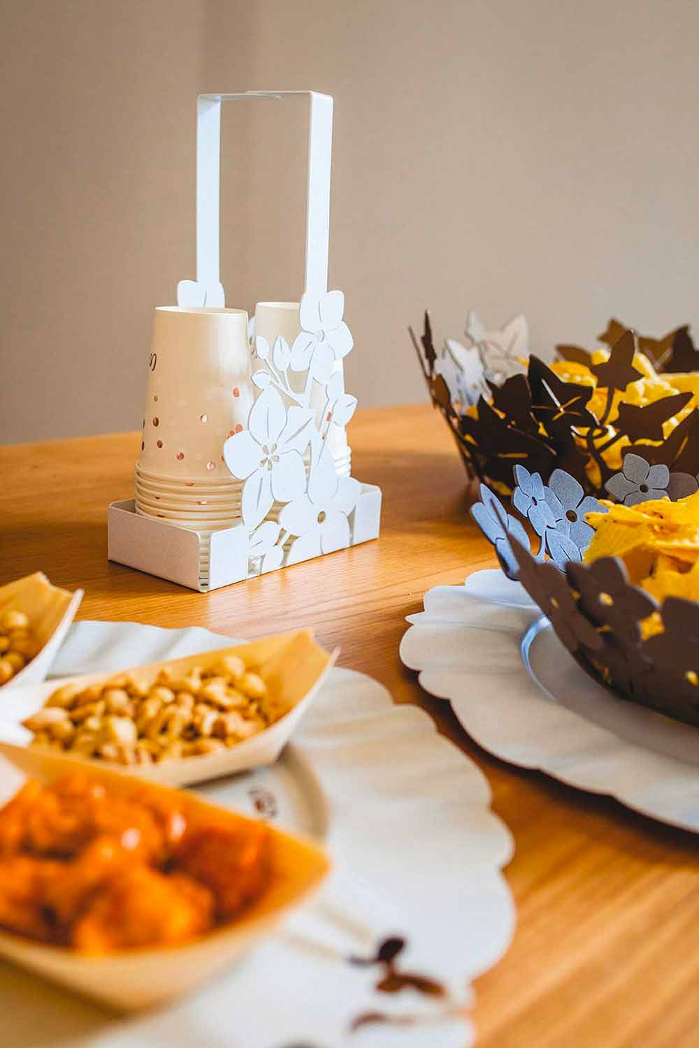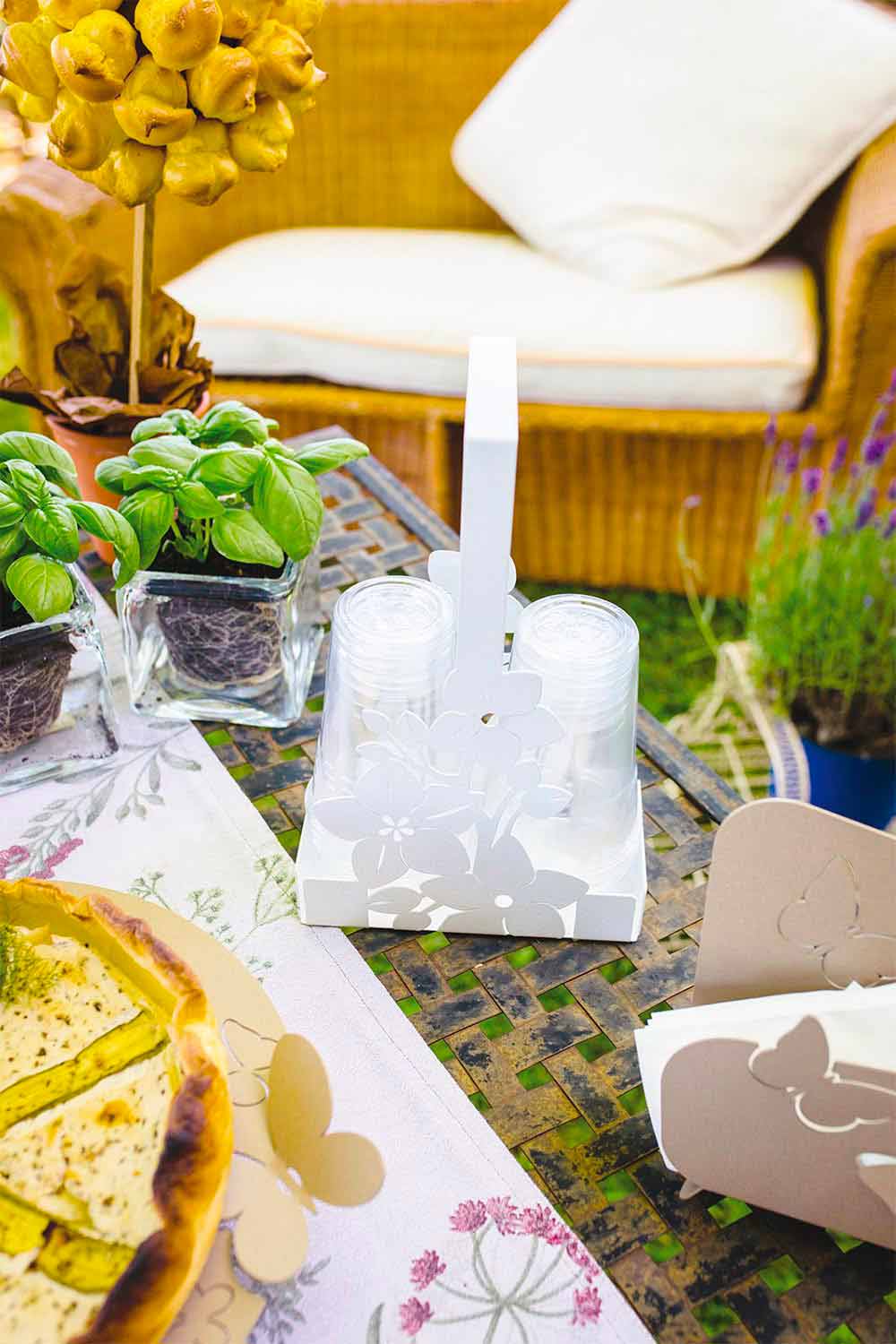 Double table cup holder with floral style, handcrafted in Italy in white iron, marble, light blue or mud.