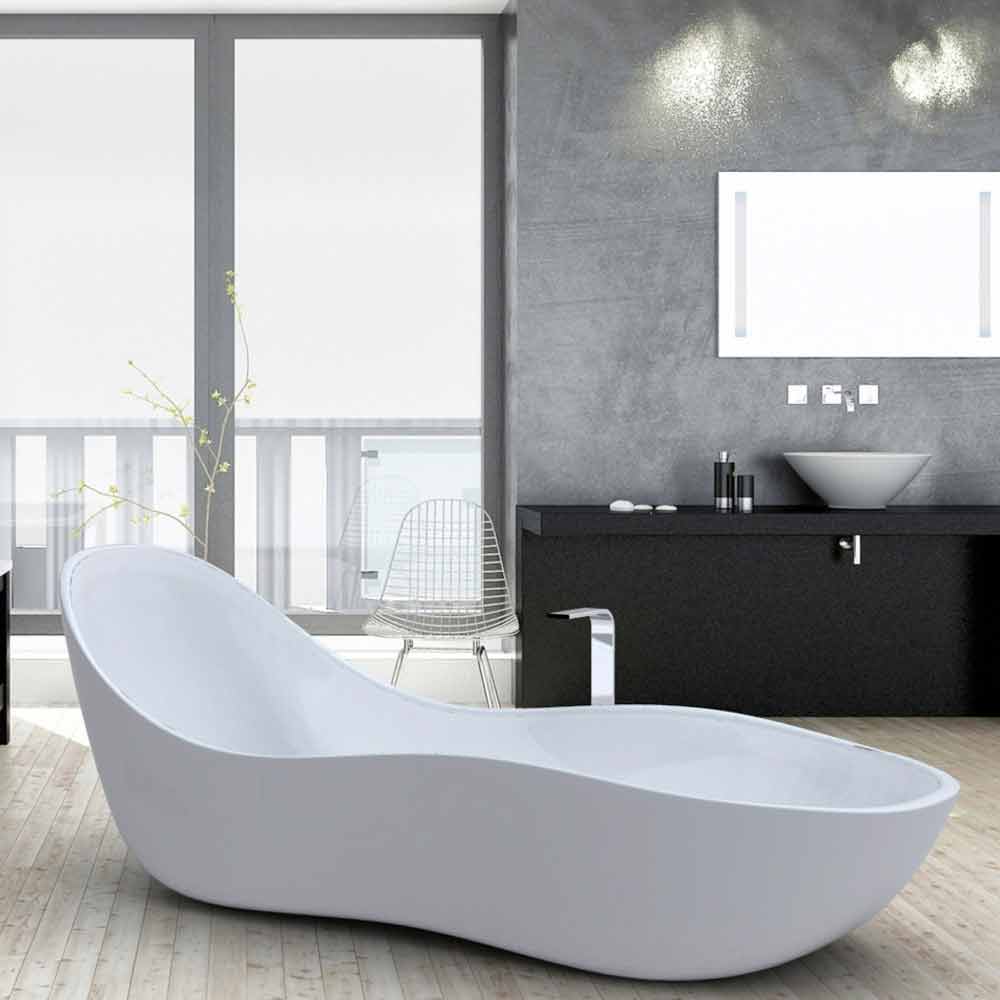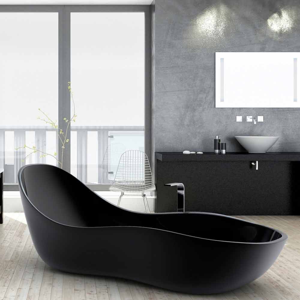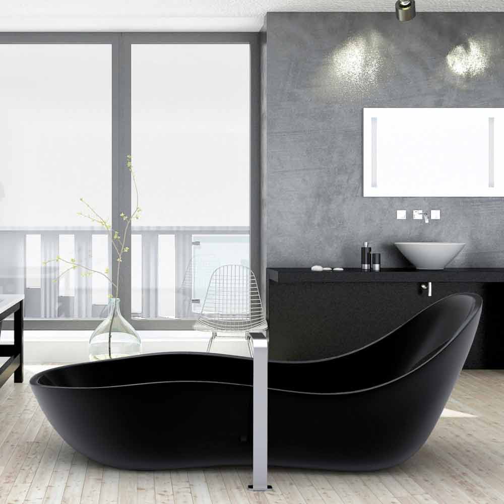 Freestanding Solid Surface bathtub; with comfortable and wavy shapes, highlighted by a side profile that recalls the shape of a Wave, from which it takes its name. In addition to its “supple” profile, it features a lift in the rear end, which becomes a real support for the back. It is highly ergonomic as it is rounded in all its parts and, in the not high part, its flexions seem to accompany the movements of ascent and descent from it. Basin available in two colour variants: White (RAL9003) or Black (RAL9005)