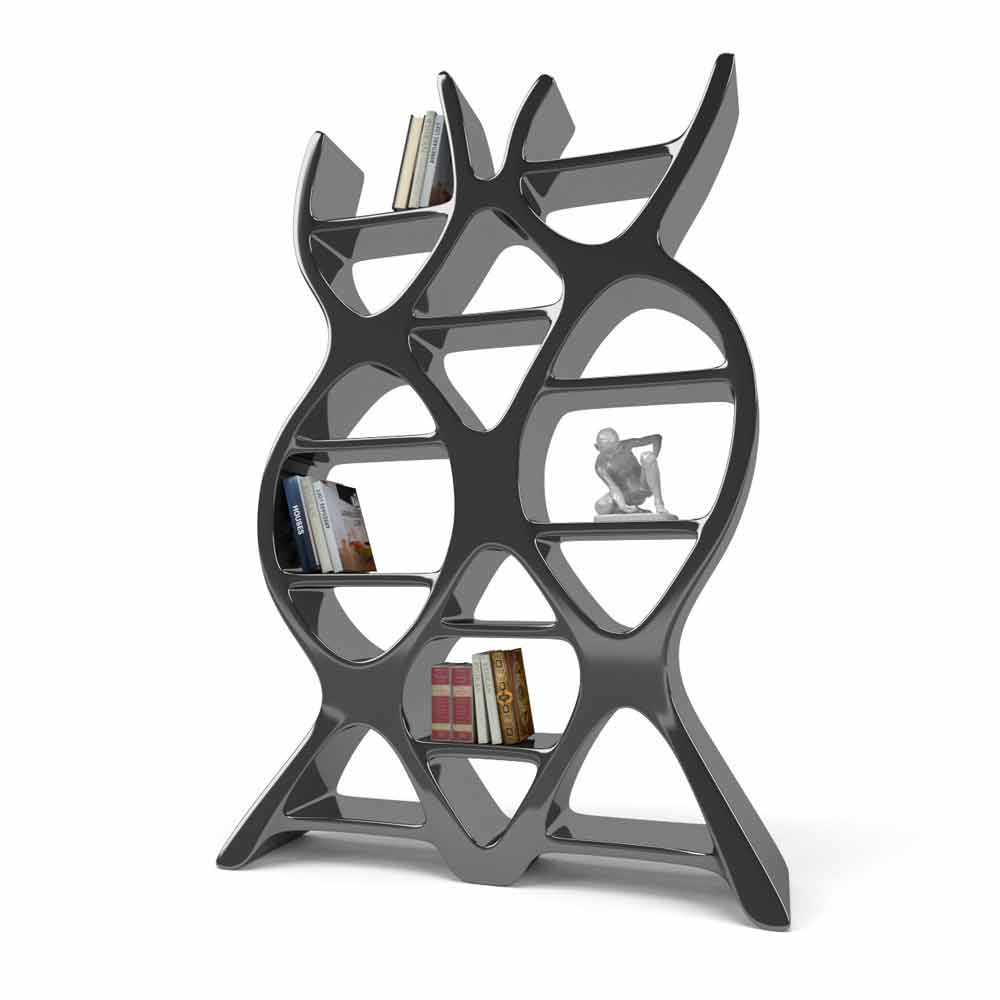 Beyond the bookcase, a sculpture inspired by DNA, a source of life and knowledge. The soft and sinuous queues, combined with a strong scenic impact, make the DNA bookcase suitable as an exclusive piece of furniture within the home. Its out-of-the-ordinary shapes also make it ideal for environments dedicated to literary bars or coffee libraries. Solid Surface structure, available in different colours: Black (RAL9005), Ruby red (RAL3003) or Pearl white (RAL1013).