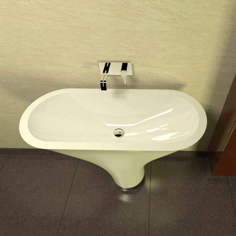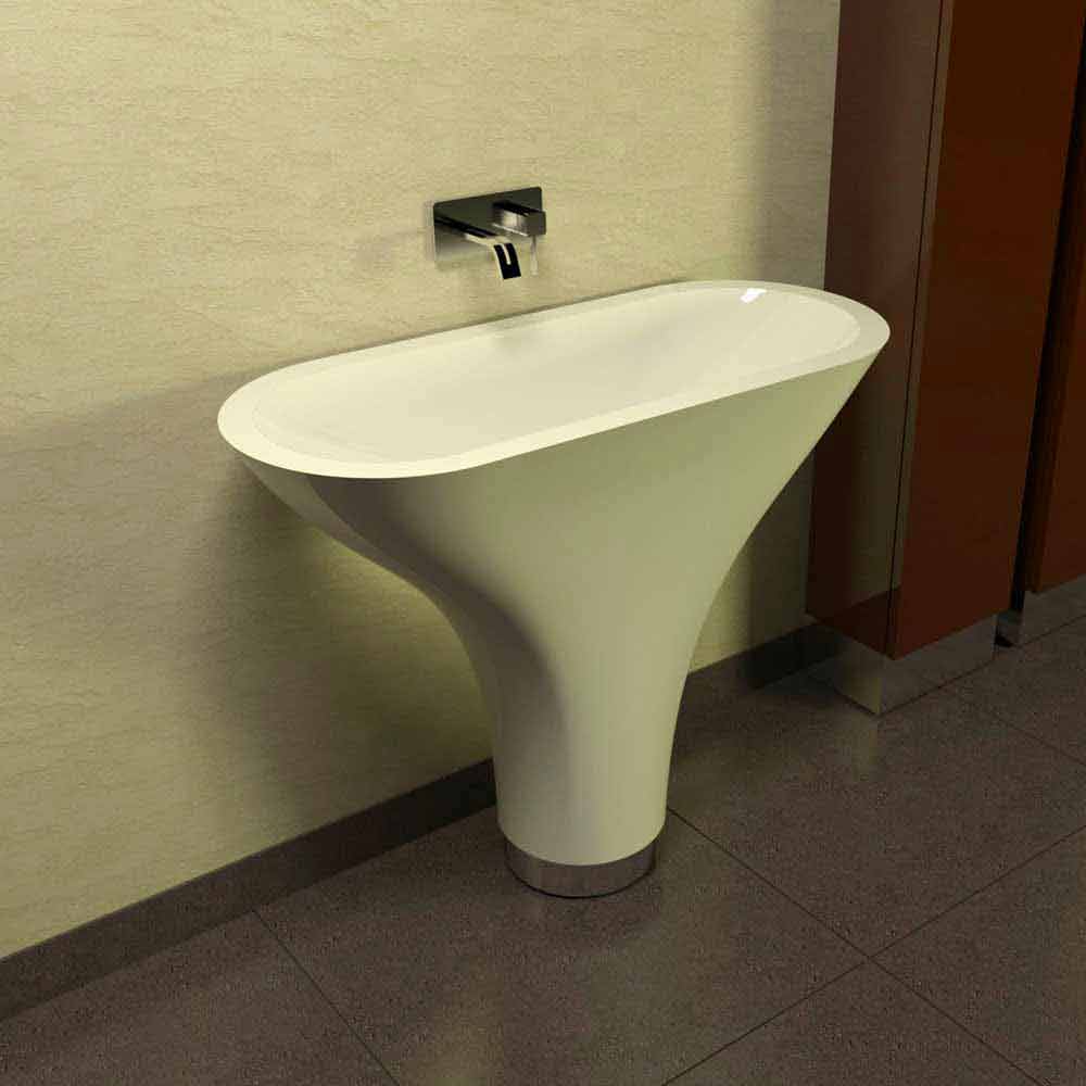 An elegant pedestal washbasin with generous dimensions that emanates a strong design personality. First of all, a design piece of furniture with a classic style in the world of bathroom furniture, but at the same time innovative for the use of resinous materials, combined with a steel plate to finish the column of the washbasin, making it a design object. simply unique.