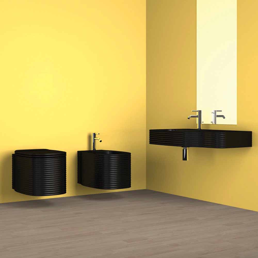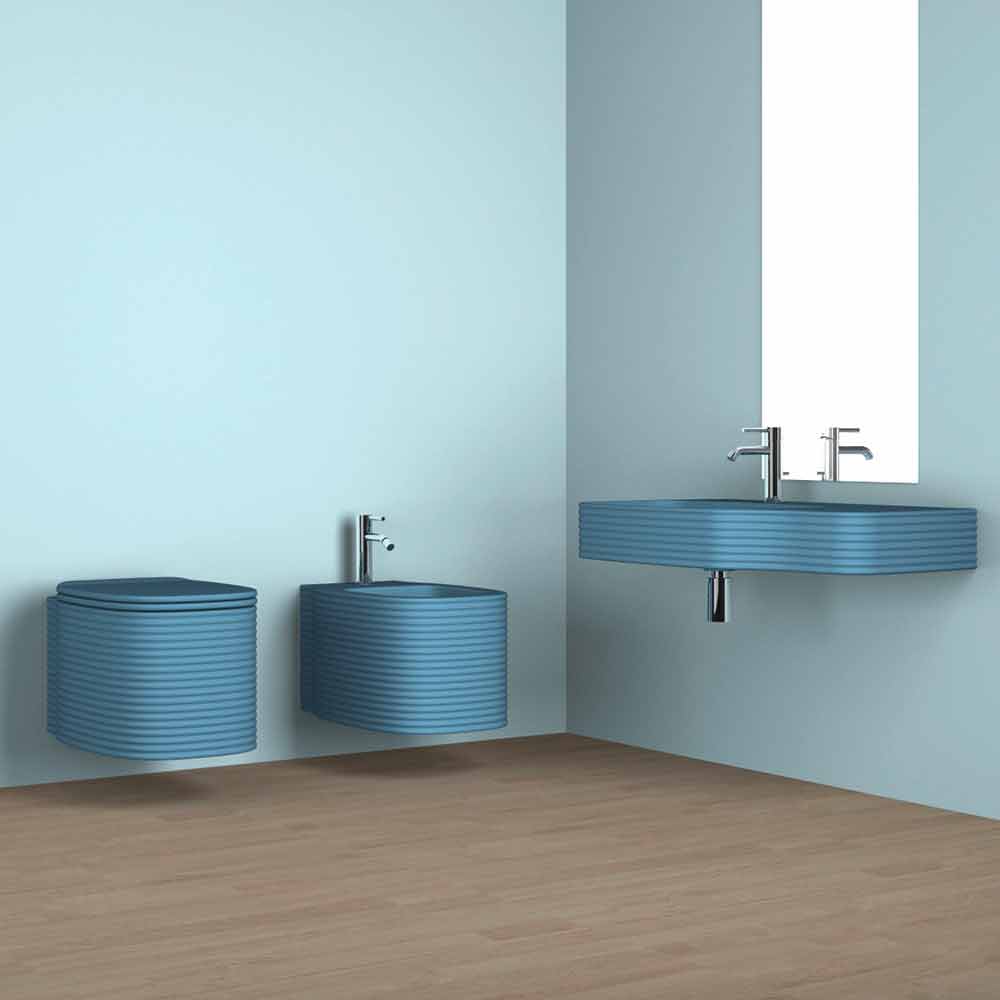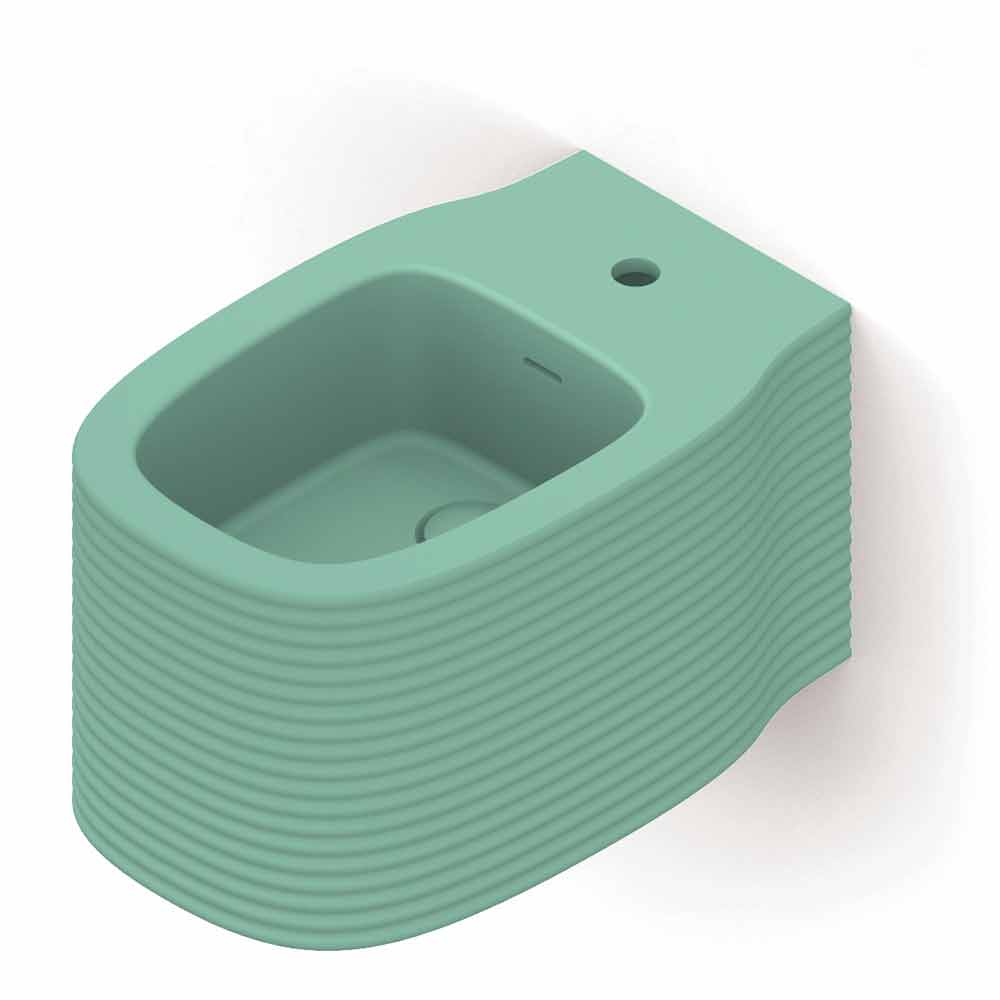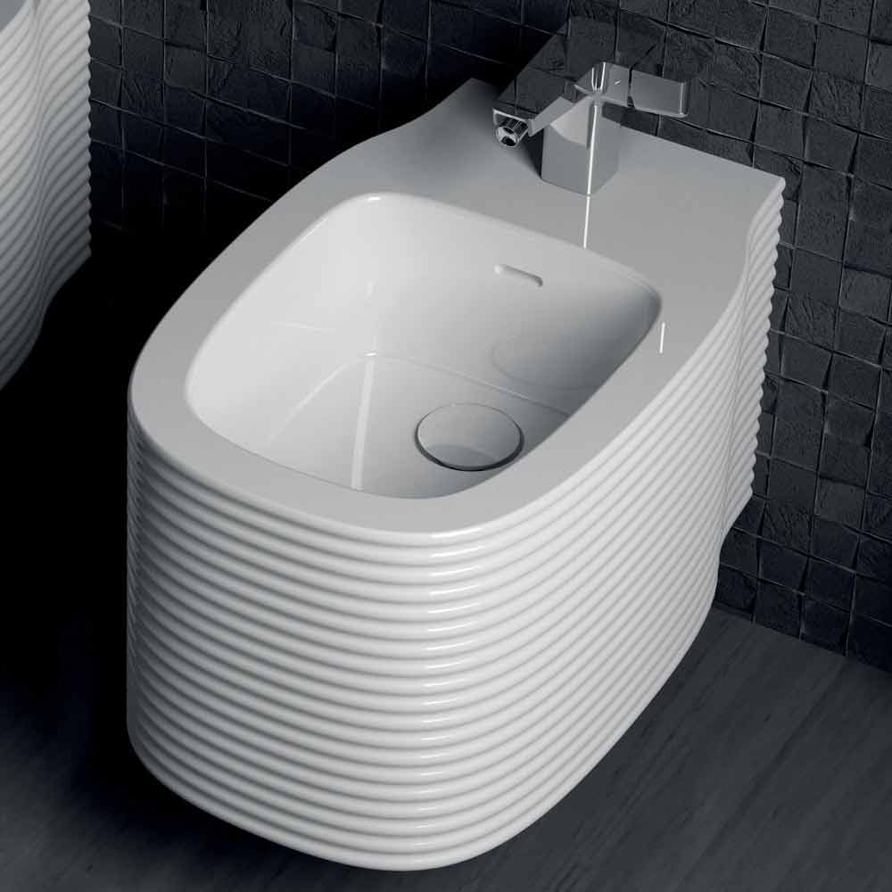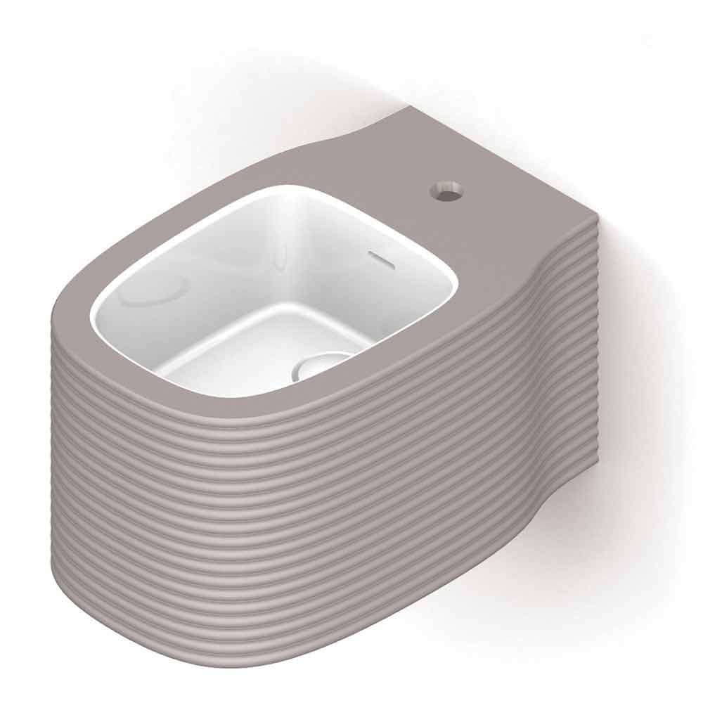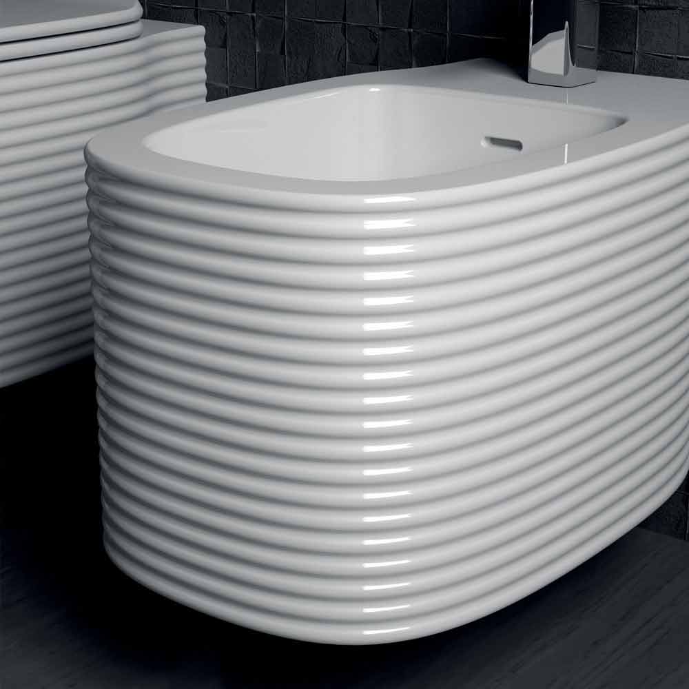 Modern design hanging bidet in pottery made in Italy, Amleto