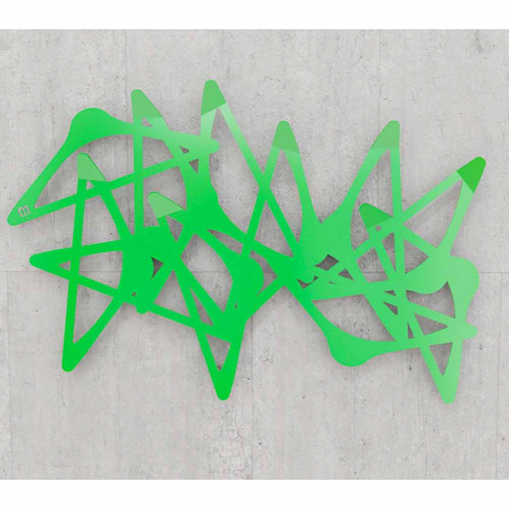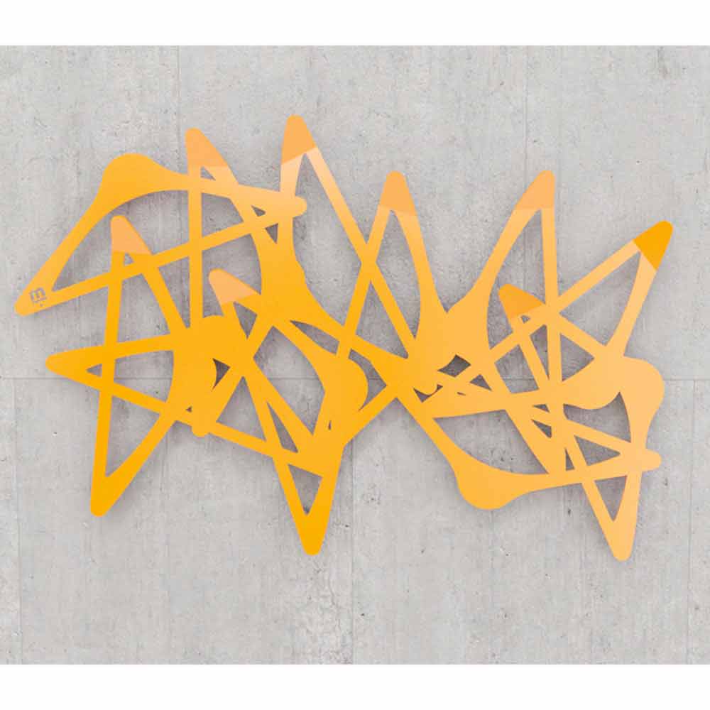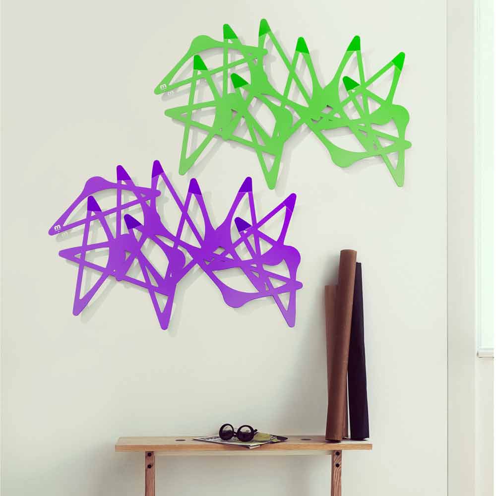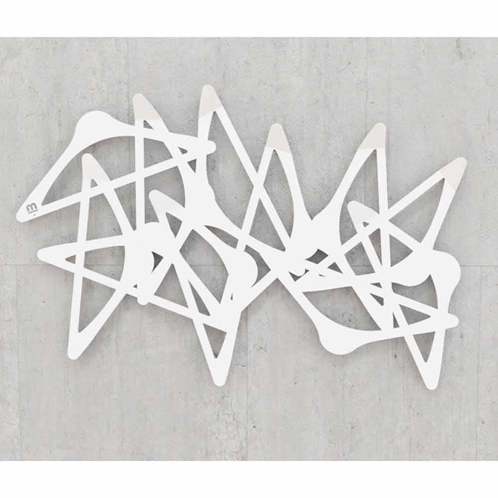 Mess to clean up. If not between words, at least among jackets and coats. Blabla is a funny coat hanger made of  laser-cut metal, shaped like a chaotic and messy stylised hanger. It is available in the colours white, red, black, orange and green.